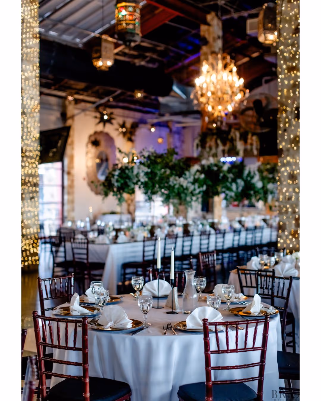 One of our favorite elements of the wedding was the inclusion of 6-foot trees lining the head table. Amanda knew she wanted trees incorporated into the décor, and we were thrilled to make it happen. These majestic additions brought a touch of the outdoors in, creating a truly unique and enchanting focal point for the reception. They added a touch of whimsy and drama, perfectly balancing the elegant floral arrangements.