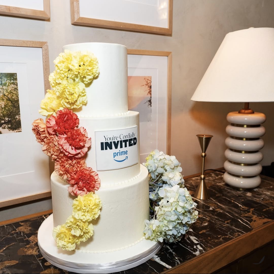 💍🎭 Pick a seat, pick a side! Our Austin screening event at Soho House brought the drama (in the best way) with wedding aesthetics and rival themes inspired by the world of “You’re Cordially Invited.” Guests were welcomed by a stunning wedding cake adorned with contrasting florals and a step-and-repeat split between marigolds and hydrangeas, reflecting the film’s dueling wedding aesthetics. 🌸💐Signature cocktails like the Sister of the Bride and Father of the Bride served during the reception were a playful nod to the story’s family feud. 🍸🎬When it was time to settle into the luxe screening room, guests picked a seat, picked a side—choosing blankets in one of two colors to match the movie’s colorful onscreen rivalry. But as the credits rolled, everyone agreed – this @primevideo premiere was two thumbs up! #yourecordiallyinvited#primevideoProduction + Design: @catalina_productionsVenue and Catering: @sohohouseFabrication: @redsmithgsFlorals: @jordanflowersandeventCake: @polkadotsatxPhotography: @j.jackkk