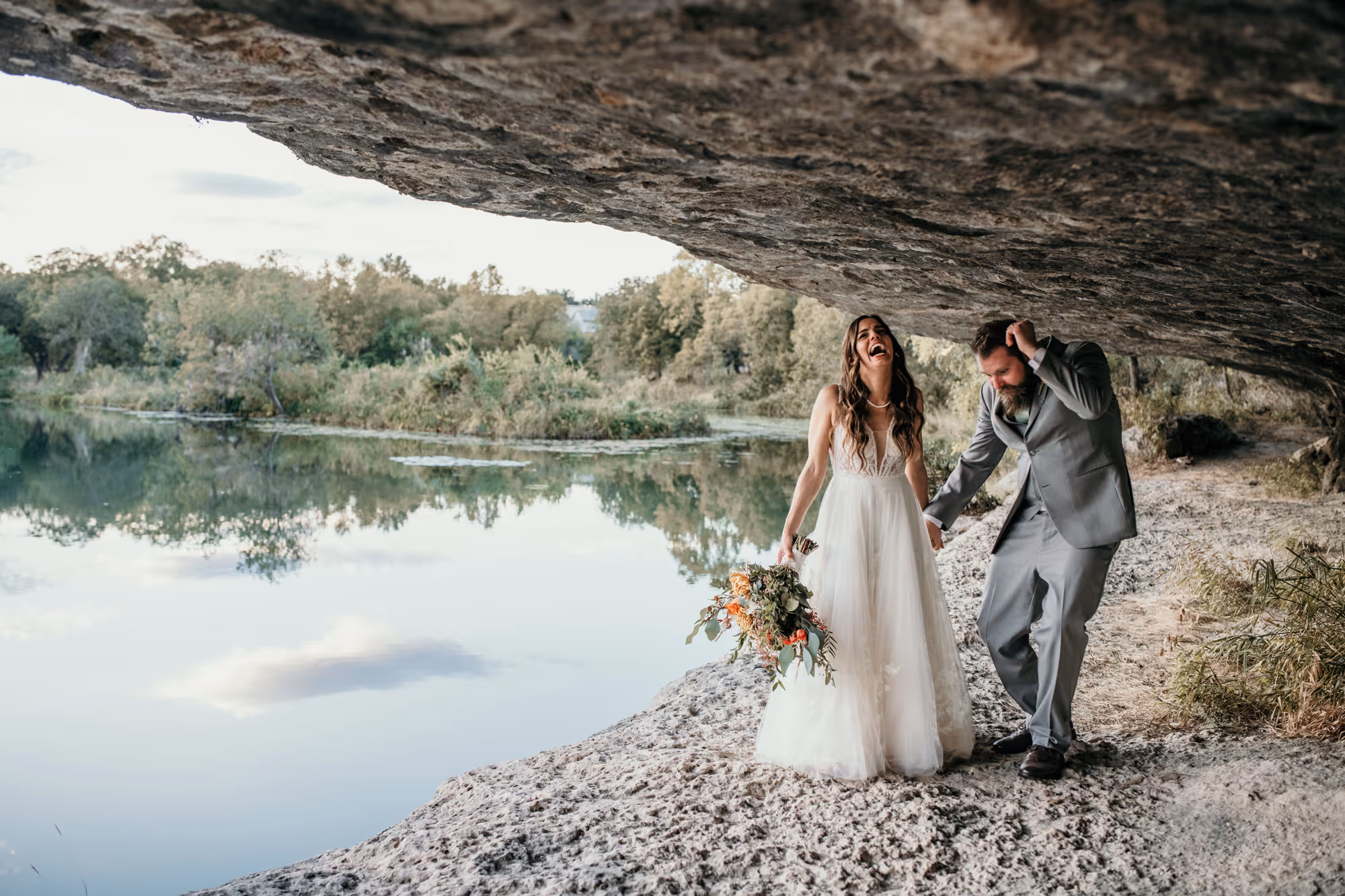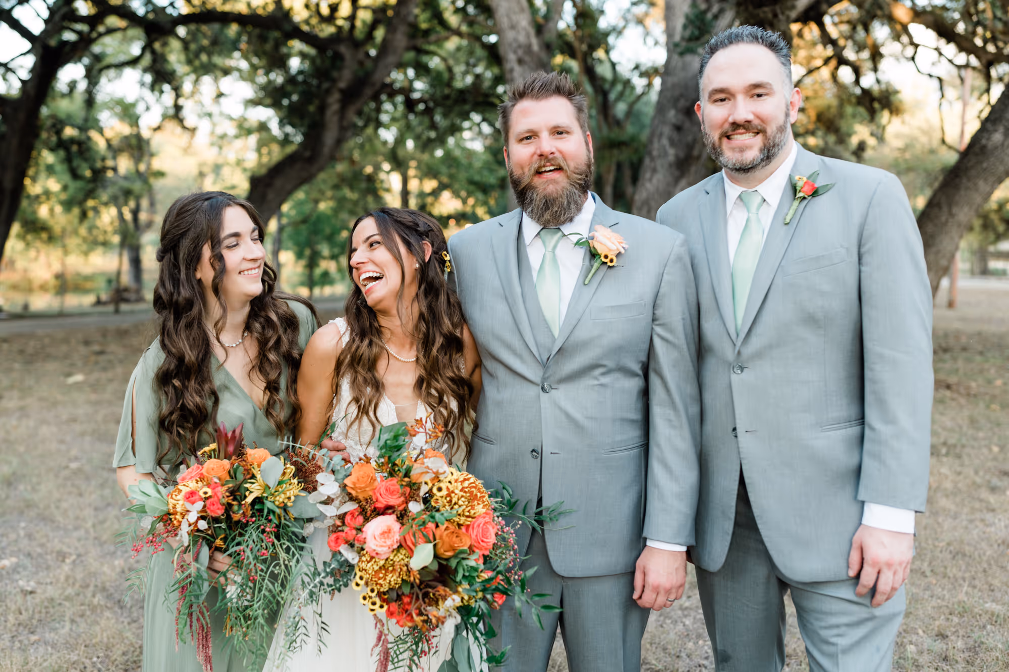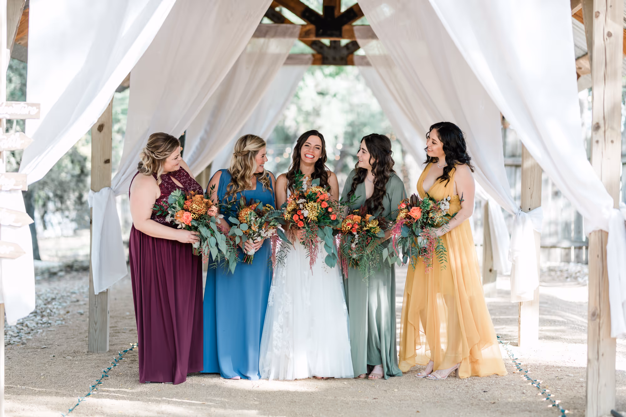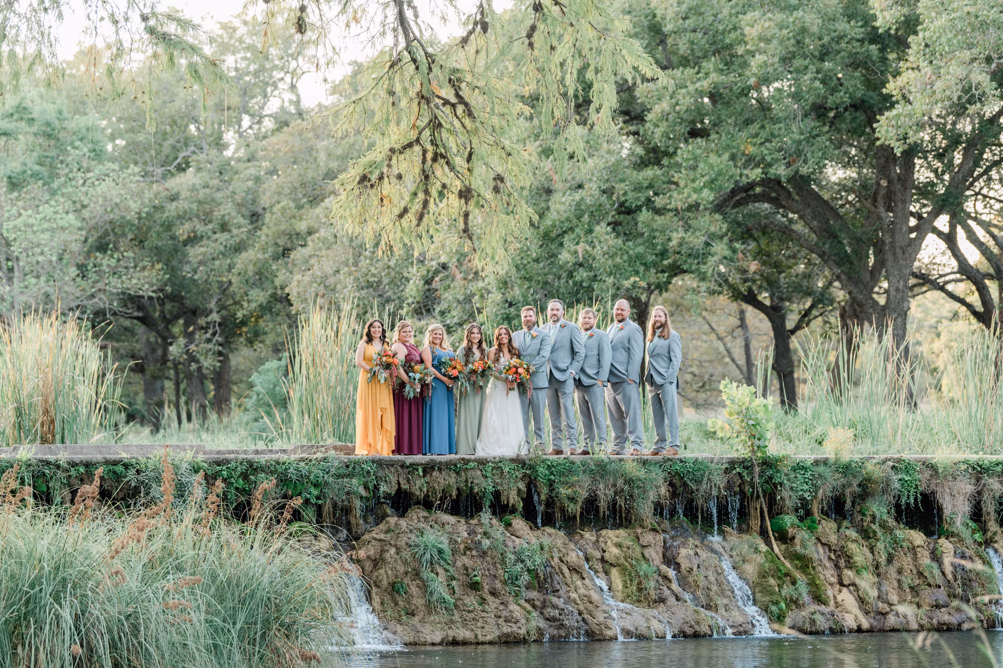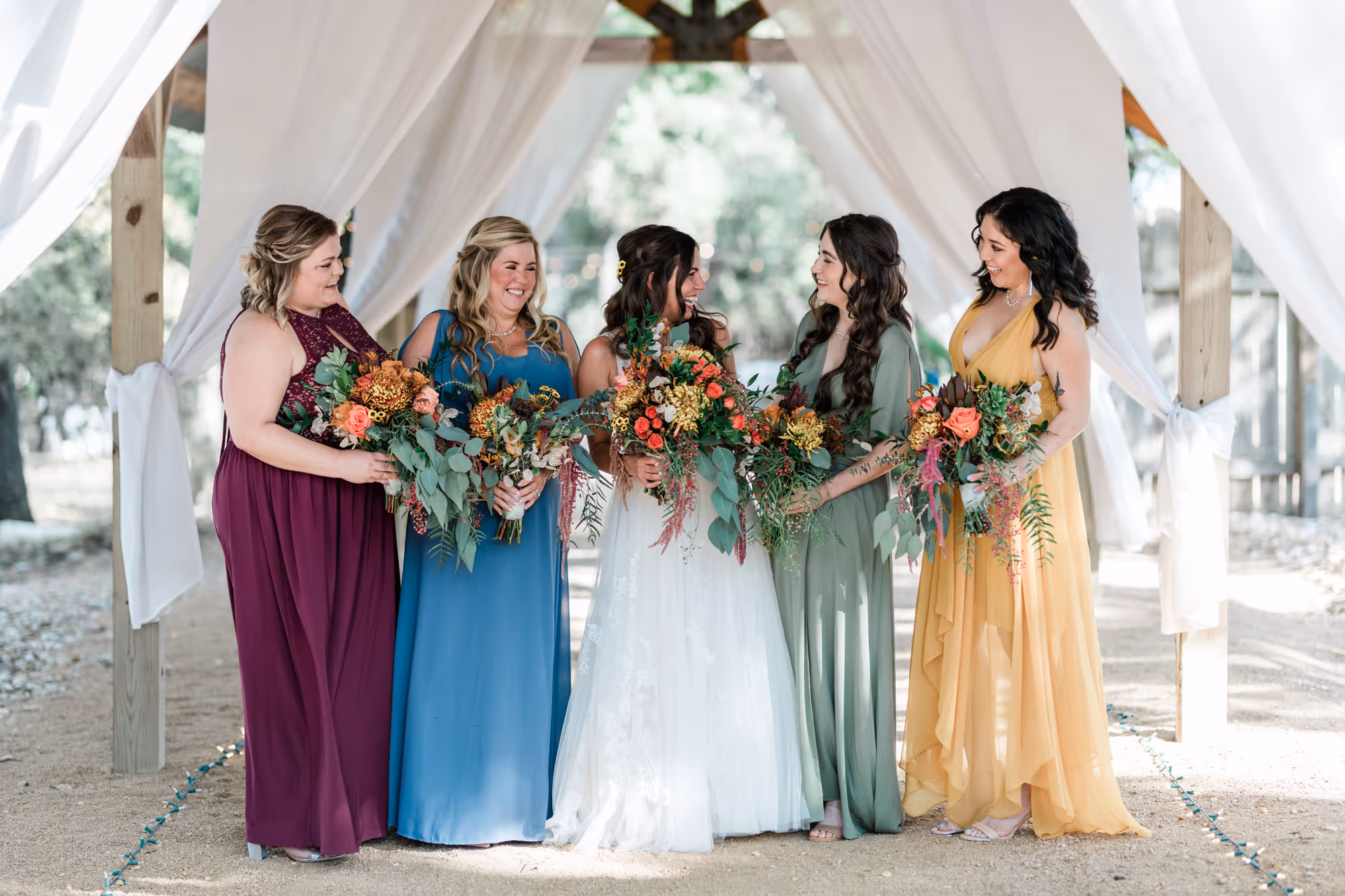 Andrea and Zeb had an amazing hill country fall boho wedding at Cypress Falls Event Center in Wimberly, Texas. Their floral matched the color of the changing leaves around them and they had a weekend filled with warm family love and laughter. Their ceremony was under the cypress trees and their wedding reception was outside in candlelight. pampas grass, fall burgundy, gold, yellow, orange, and blues! Such a beautiful wedding day!