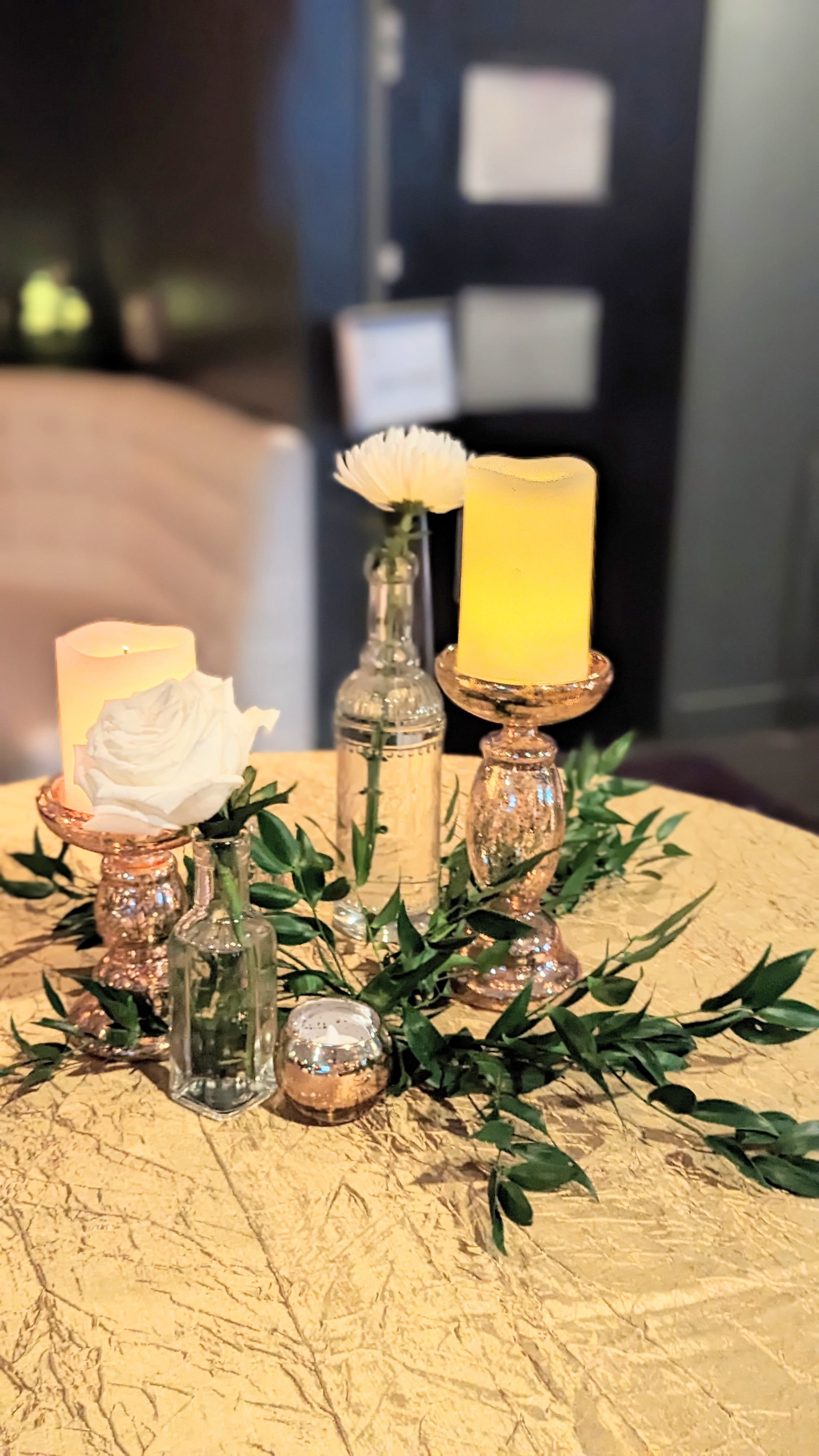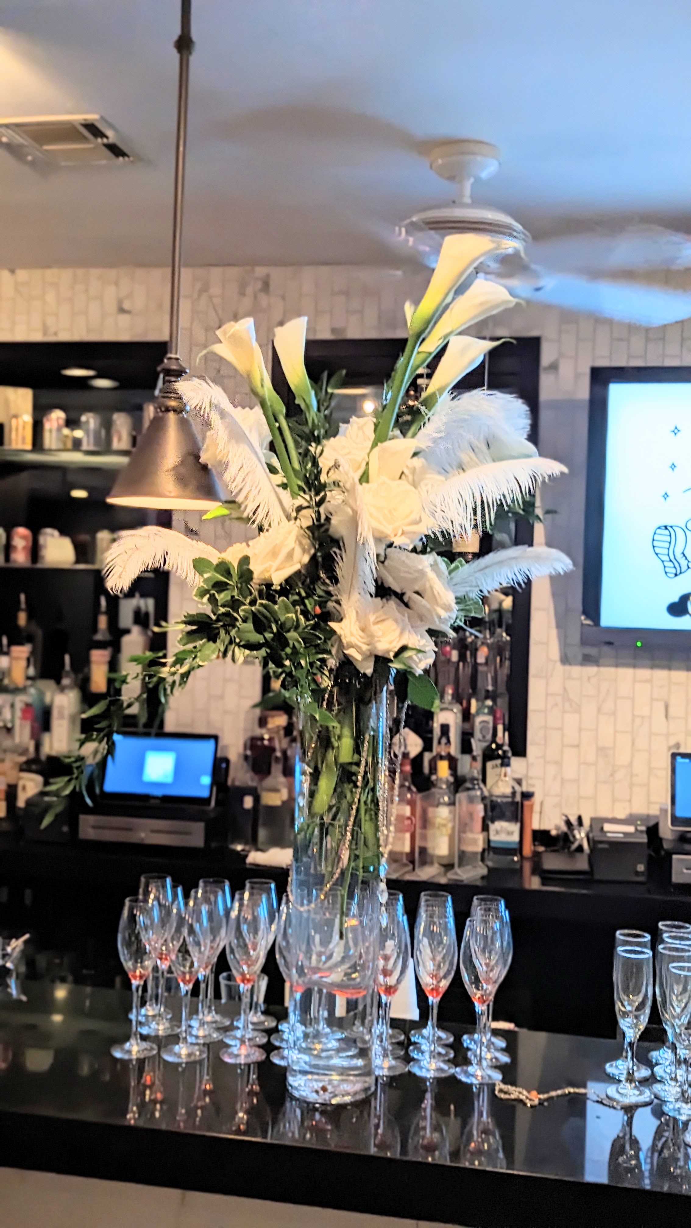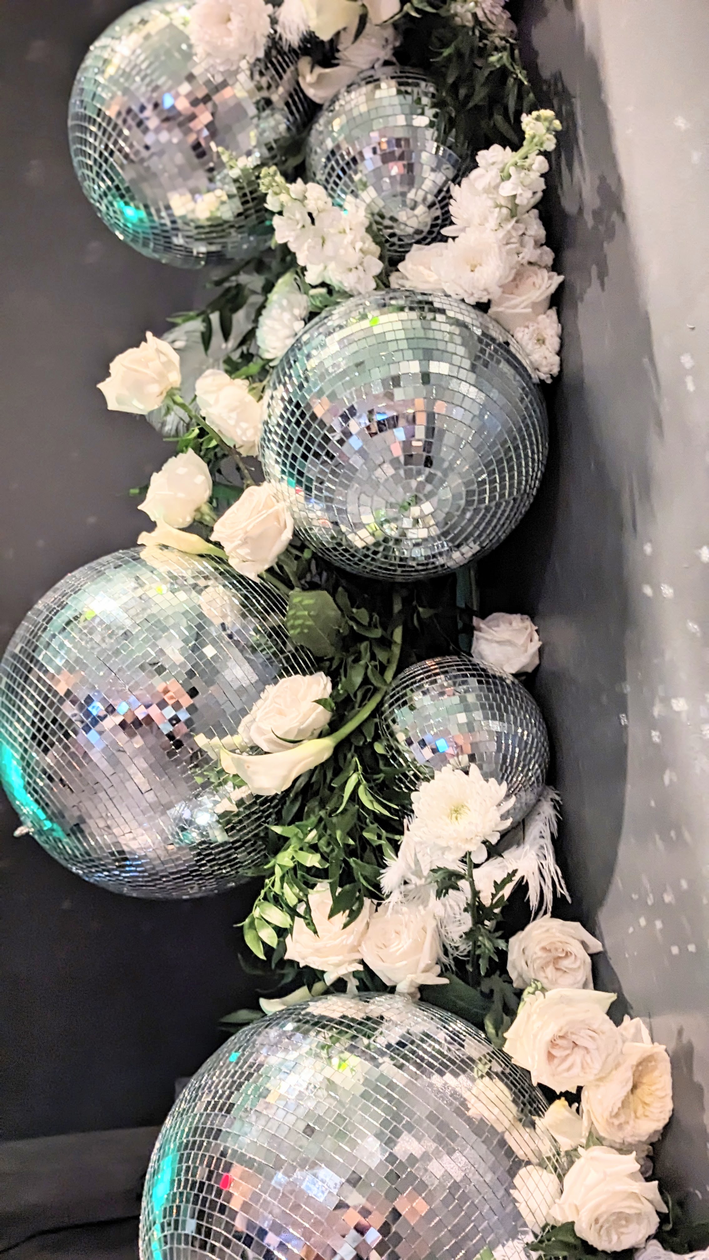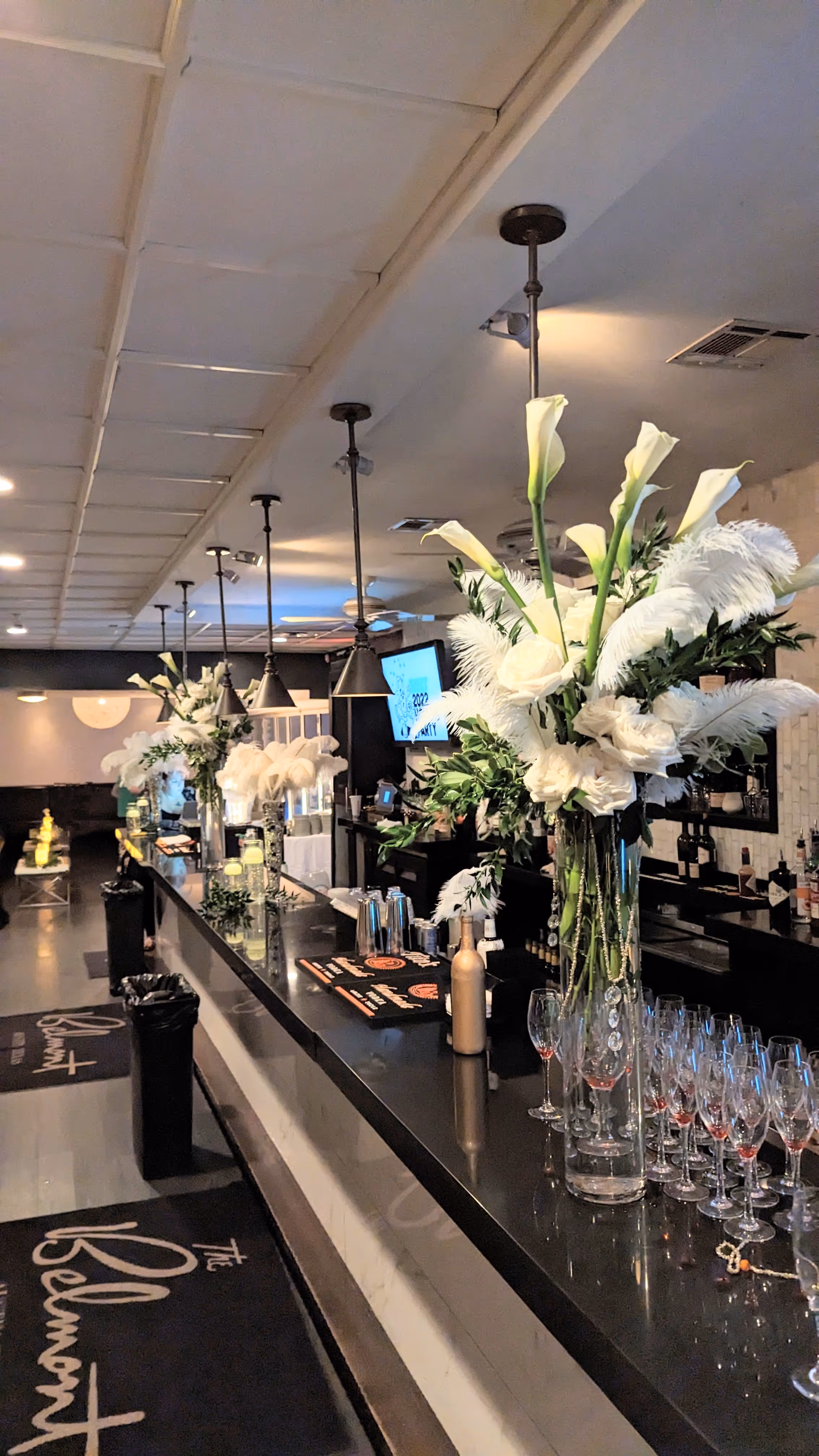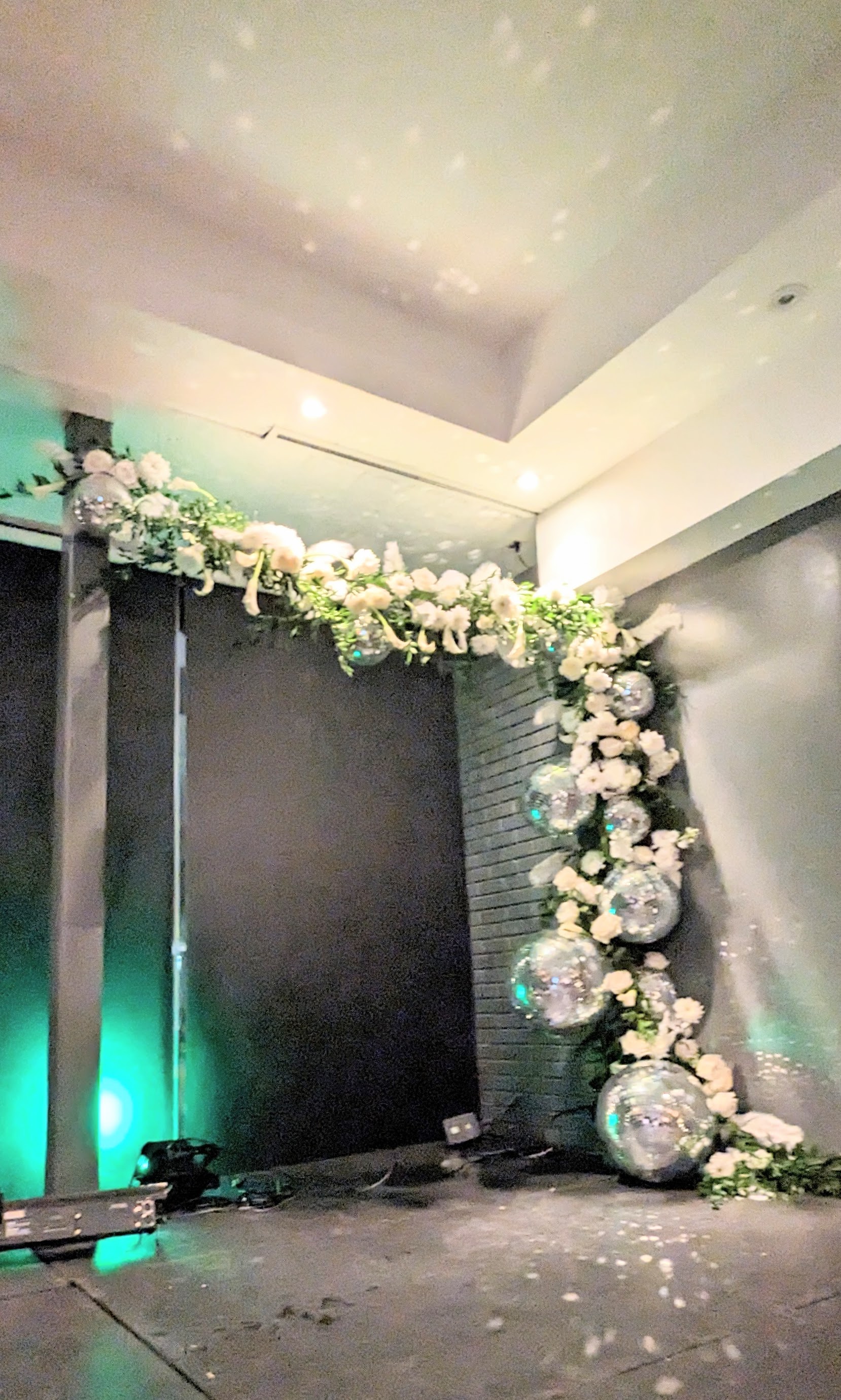 It's the holiday time in Austin! You know what that means! Parties full of amazing themes, flowers, and fun rentals! We recently did a fun Speakeasy theme at Austin's classic music venue The Belmont located downtown on 6th street. This corporate event had such a fun theme. To bring the Speakeasy roaring 20's holiday theme to life we used our mercury gold LED rental pillar candles, feather, eclectic bud vases, and flowers and greenery from the base of the tables to the very top to create a very full romantic candlelight ambiance. Our favorite features at this live event were the 4 ft tall spectacular bar arrangements filled with feather premium flowers with draping crystal beads hanging from them. While the bar was a spectacle when guest walked in the stage was STUNNING! We did a fresh flower installation above the band where to frame the stage and give it some love. The disco ball rentals were scattered throughout the stage set up that were like little dazzling bubbles that grew larger and clustered at the base. The stage floral afterwards turned into the perfect photo backdrop for the guest photo Opp at the end of the party. This party was a gorgeous live Austin event that their guest will forever remember.