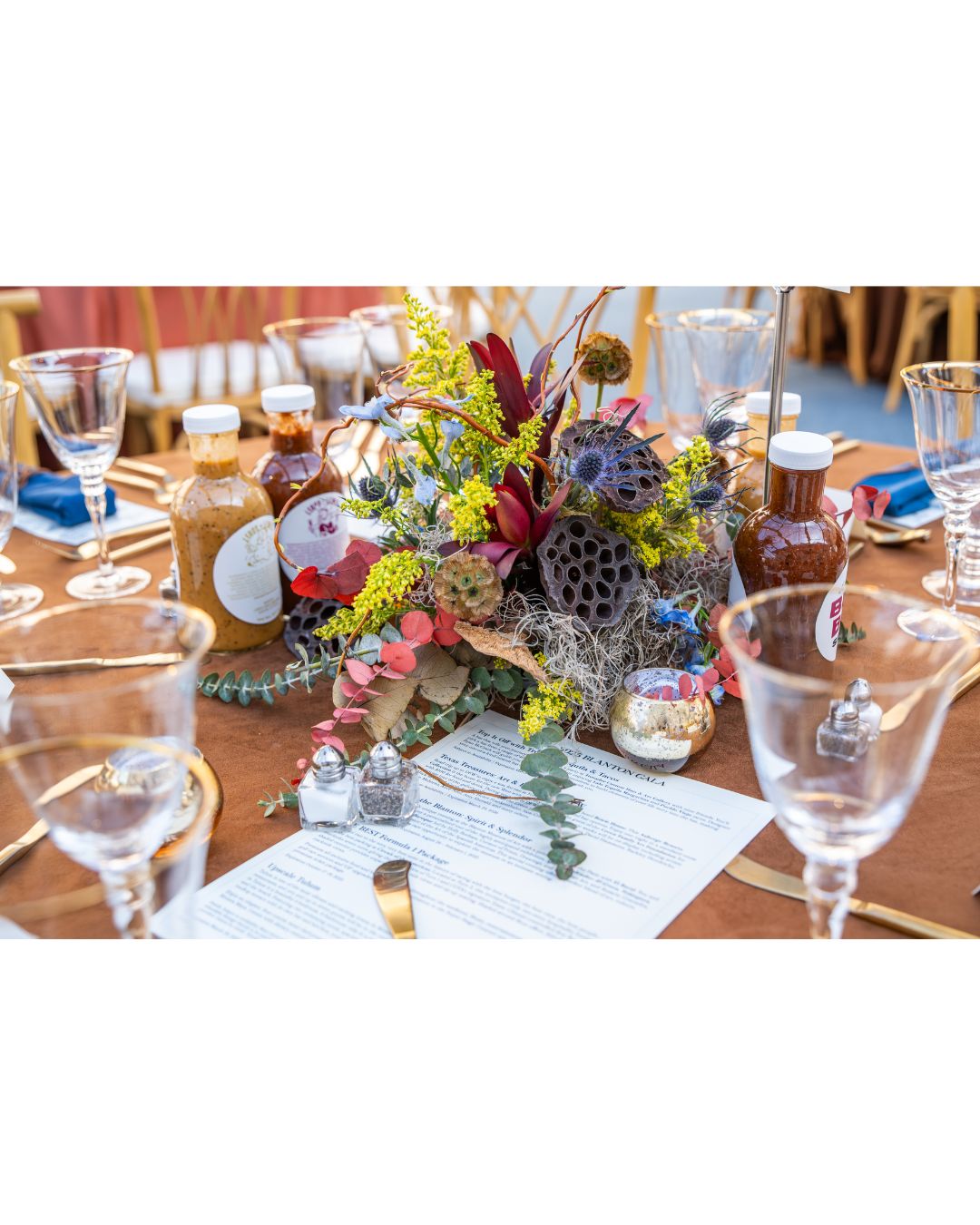 - Textured Table Arrangements: We incorporated a variety of textures and blooms, reflecting the diverse landscapes of Texas, from arid plains to lush spring fields.