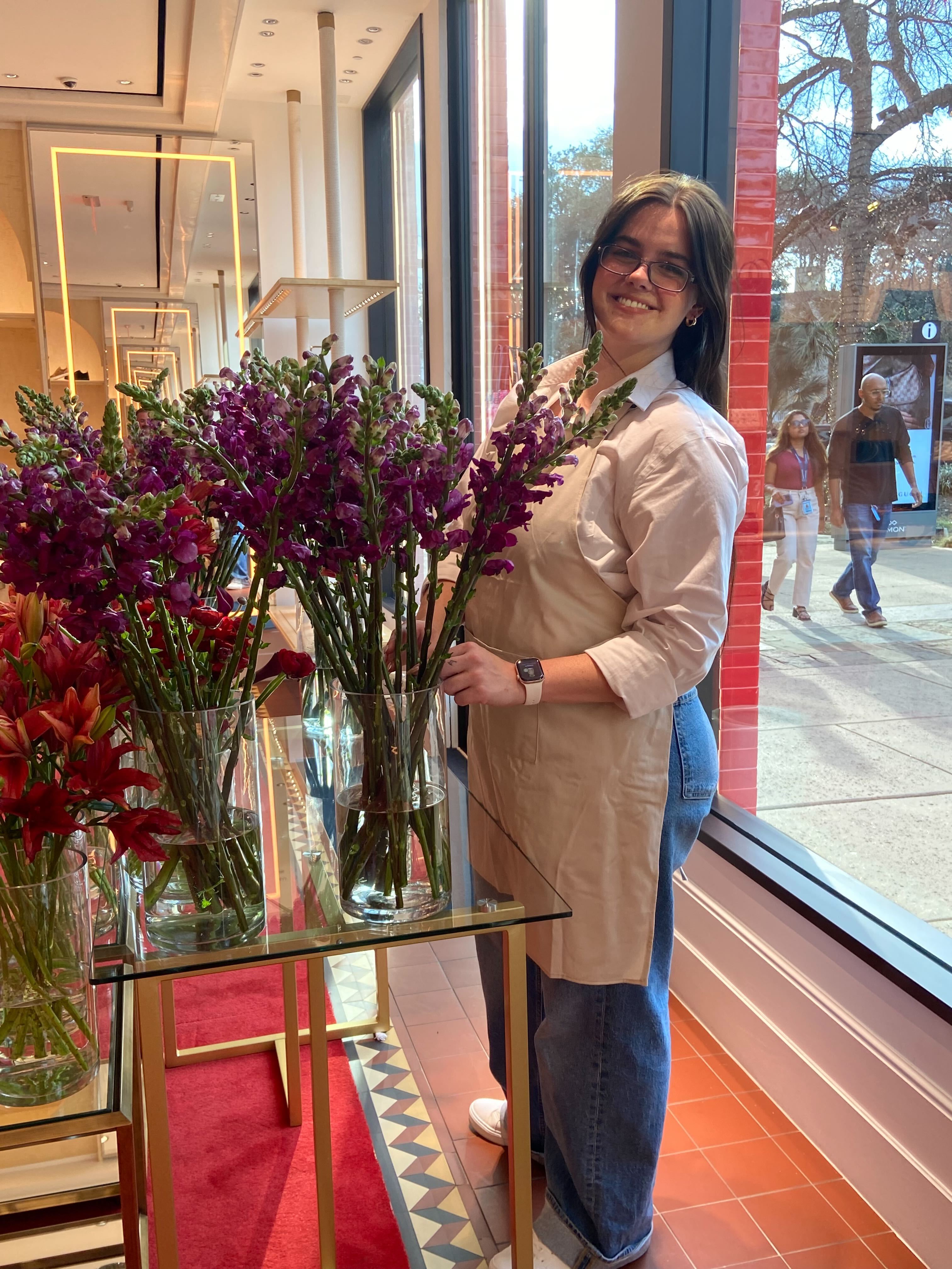 Hosting this activation at The Domain provided the perfect backdrop of high-end fashion and sophisticated foot traffic. The flower bar served as a living extension of the window displays, drawing people into the Louboutin universe through scent and color. It was a beautiful reminder that luxury is found in the details—the curve of a heel, the velvet texture of a petal, and the personalized touch of an event designed specifically for the brand's most loyal admirers.