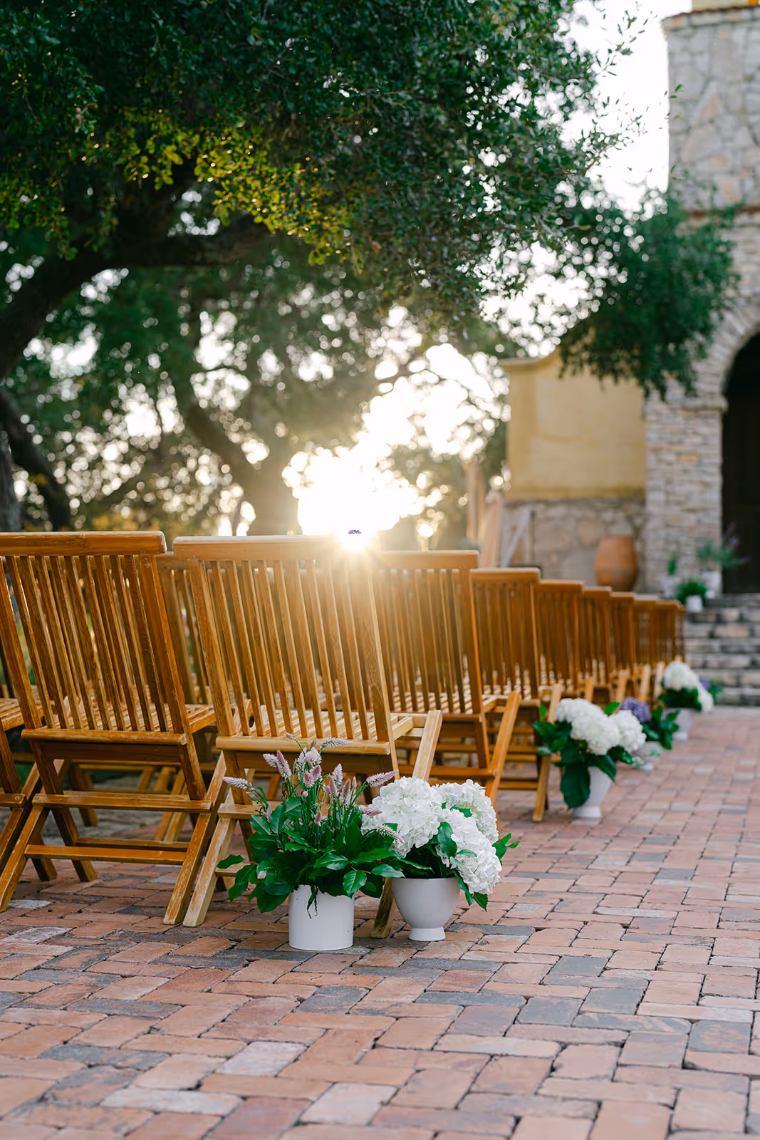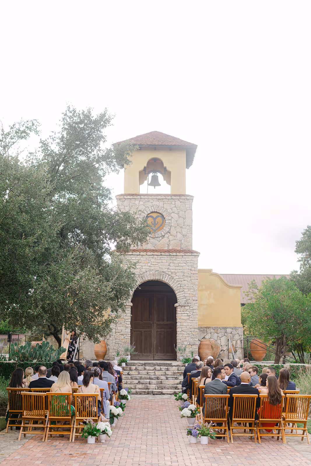 Villa Antonia, a Spanish Tuscan-style estate nestled in the heart of the Texas Hill Country, set the stage for a truly magical wedding day. The air was filled with anticipation as guests gathered for the ceremony, which was held downstairs in the enchanting butterfly garden.