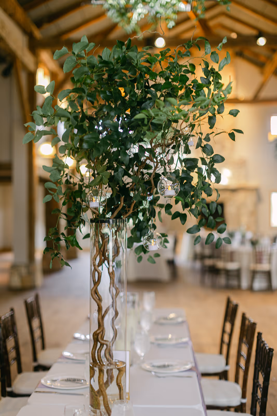 Following the heartfelt ceremony, guests moved to the reception, where candlelight flickered, casting a warm glow over the tables. The reception centerpieces were exquisite, with table flowers continuing the elegant theme and adding a touch of romance to the celebration. The reception decor was a perfect blend of rustic charm and sophisticated elegance.