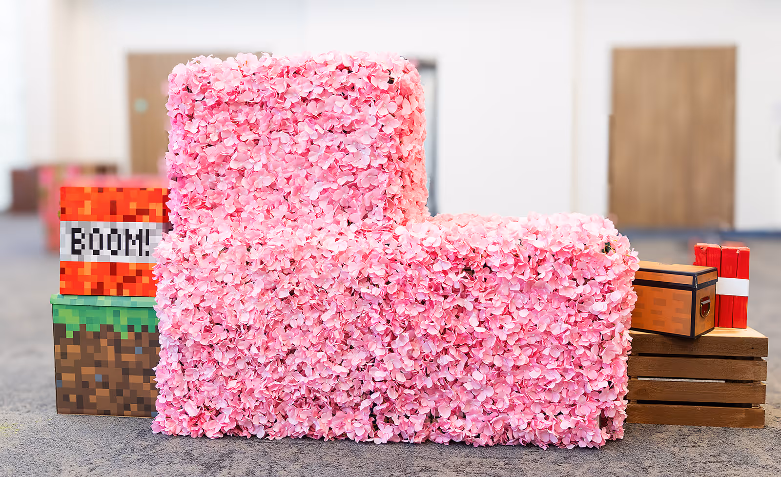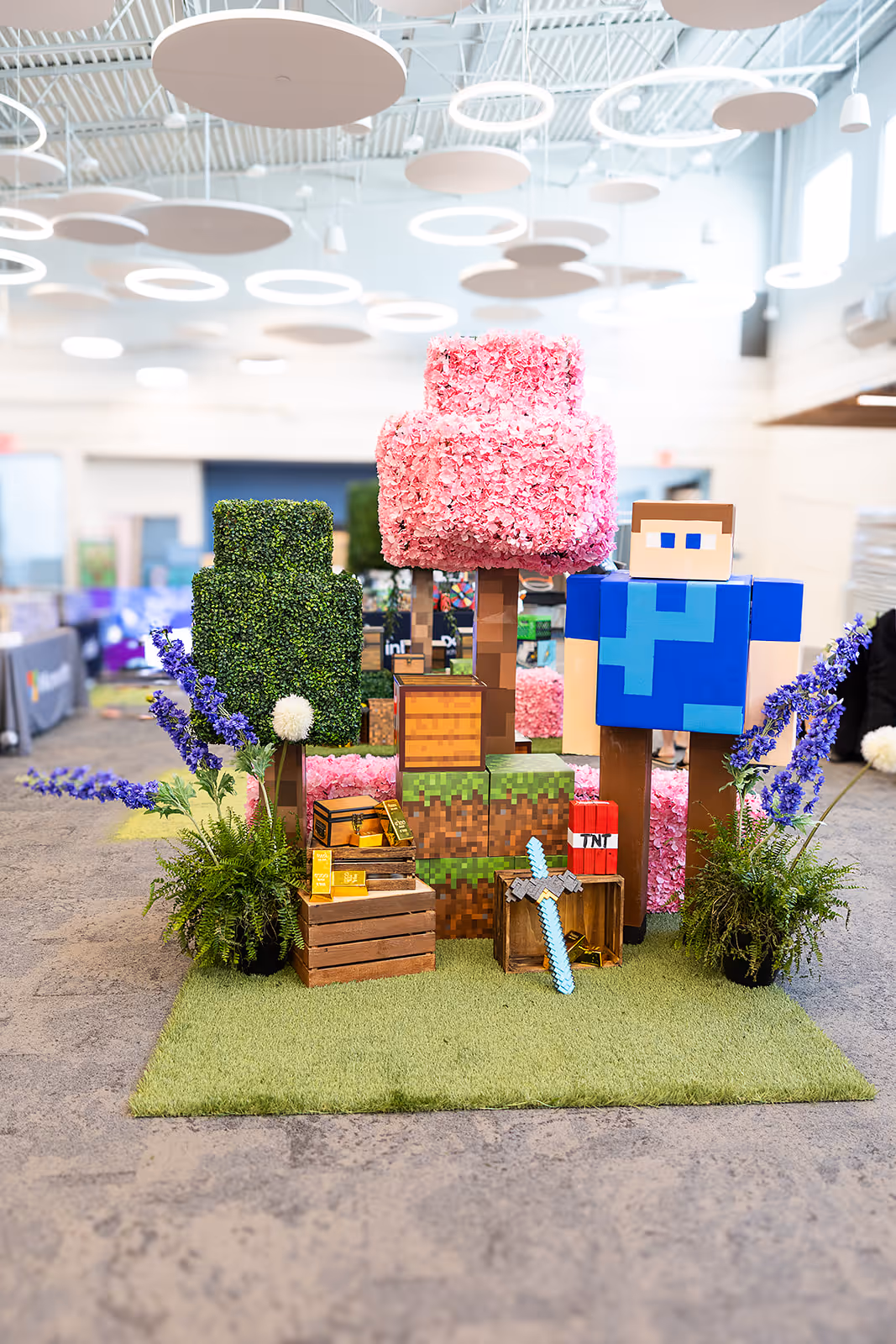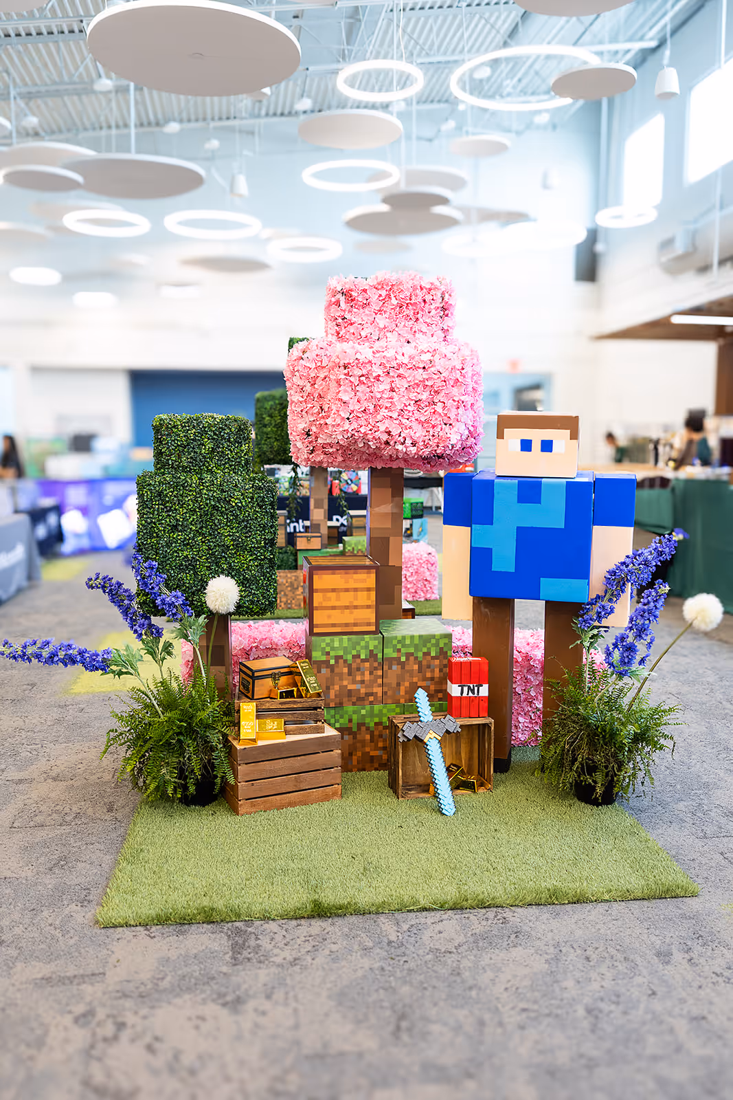 What better way to capture attention and spark curiosity than by tapping into the universally recognized and beloved aesthetic of Minecraft? We dove headfirst into this pixelated world, custom-designing and fabricating a whole host of thematic elements: