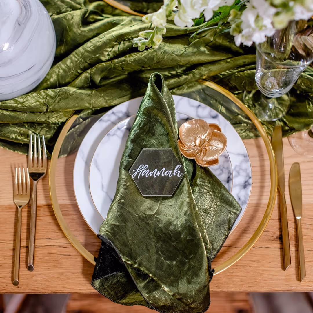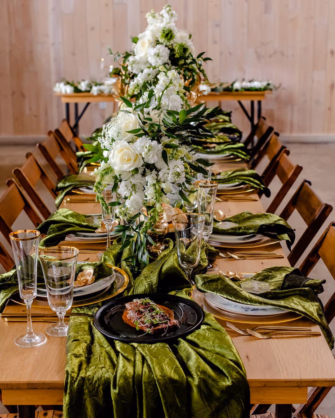 When searching for a timeless wedding theme or color palette that you won’t regret years down the road, you don’t have to opt for bland. This emerald wedding inspiration planned by Jordan Flowers and Events proves that dreams really do come true! Incorporating bold emerald green alongside classic metallic and crystal elements from Premiere Events Austin, this wedding scene is just as elegant and stately as it is eclectic and unique, and we just love how alive florals and greenery on every tablescape make it all feel. Our favorite part of this big day is the model bride’s wedding attire. She is stunning in a sleek and simple V-neck gown from Unbridaled. Read on to hear what the planner had to say about this timeless, emerald wedding scene.