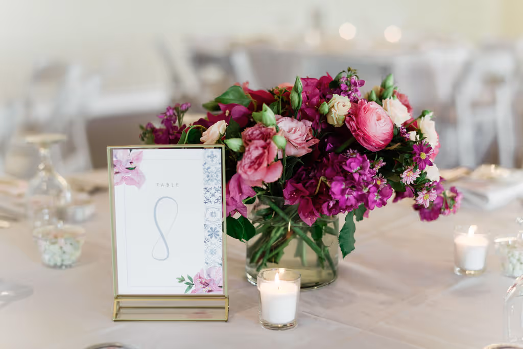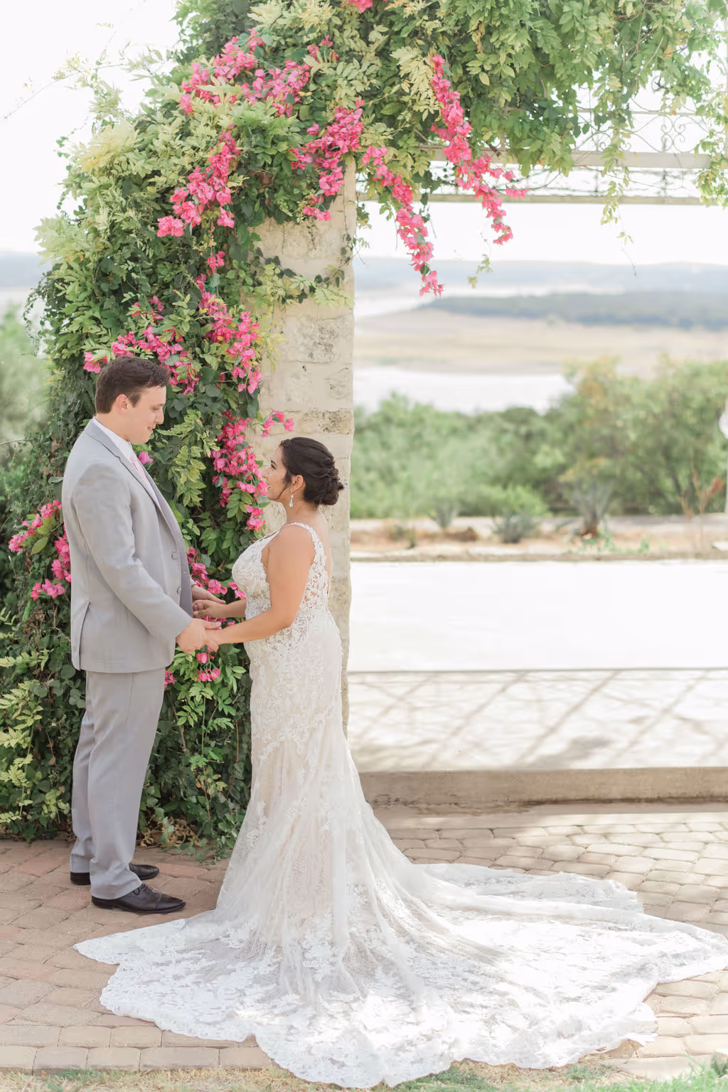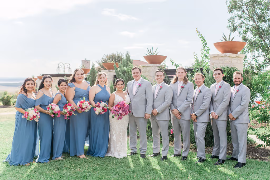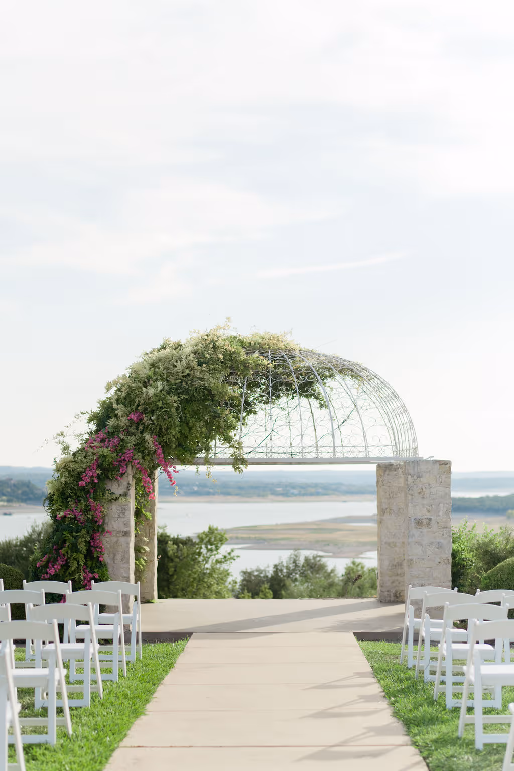 Vintage Villas is located right in front of Lake Travis 20 miles from Austin with lake views from the ceremony to the reception. With all of the summer festivities, our sweet couple's favorite place in the world was Greece, so we brought all the Greece feels to their Texas hill country wedding day. We used bougainvillea's as the main flower with all of the hot pink flower tones to heat up the summer love. Our favorite part of their wedding day was their show stopping awe factor chandelier installation with a matching sweetheart table to accommodate. We did a mixture of eclectic bud vases and flower arrangements to create a diverse table scape and highlight the reception guest table flowers. They had the most fresh flowers in all of Austin with the BEST service from their vendor team. Eclipse Events Co. coordinated the event and did a spectacular job tying in the wedding theme and April Mae Creative was able to capture all fo the details to bring them to life forever. Austin is not just the capital of TExas but also the wedding capital of Texas and we are so excited to bring new hot wedding colors and tones to you for wedding and or event inspiration for your next event! HEre are the vendors who brought their wedding day to life:
