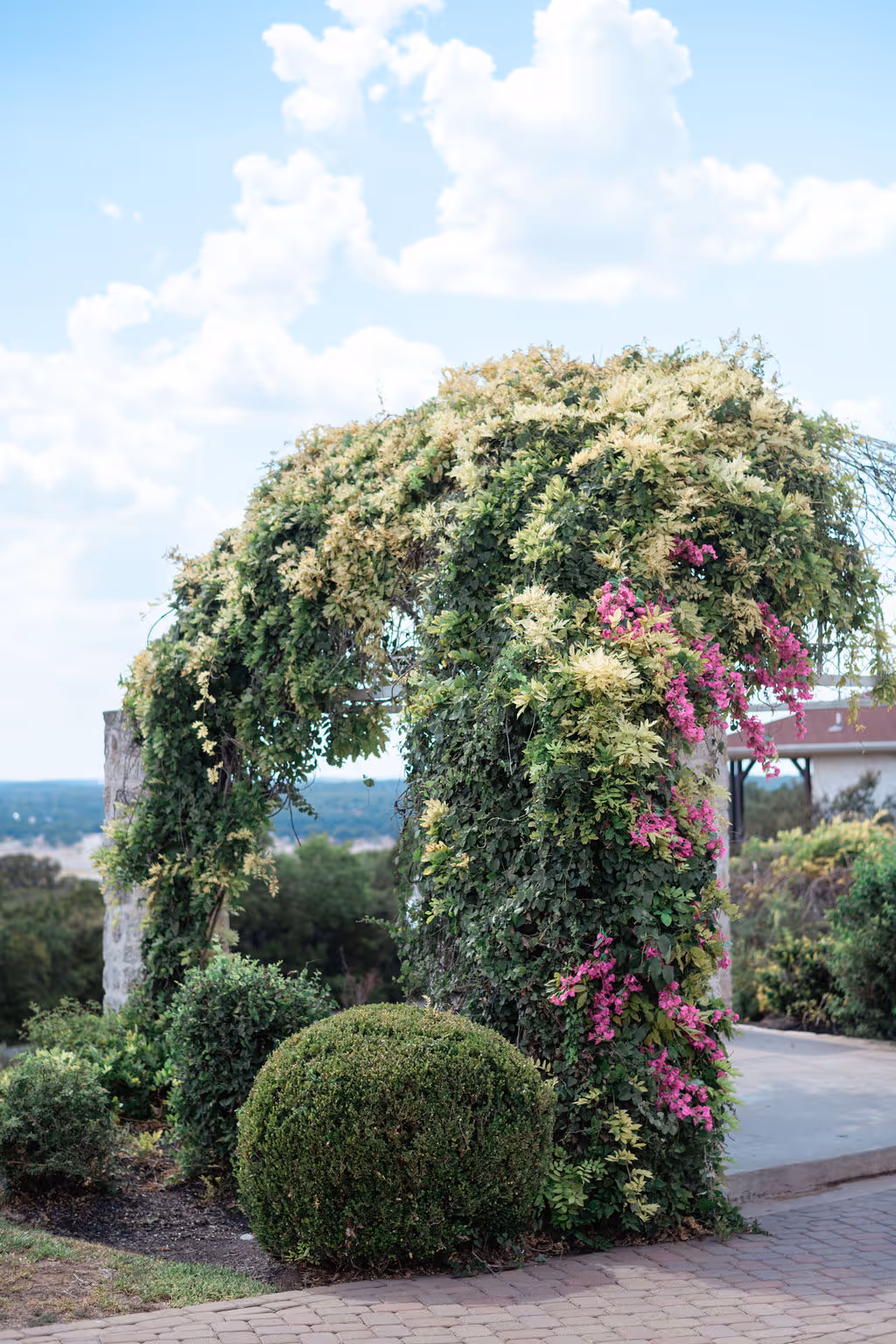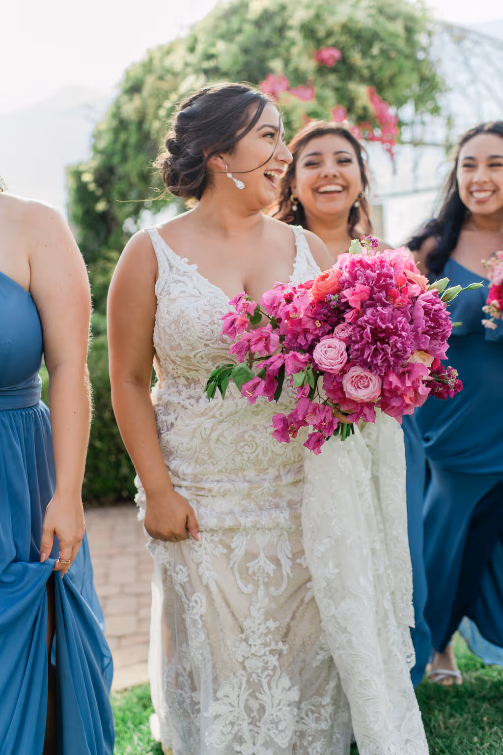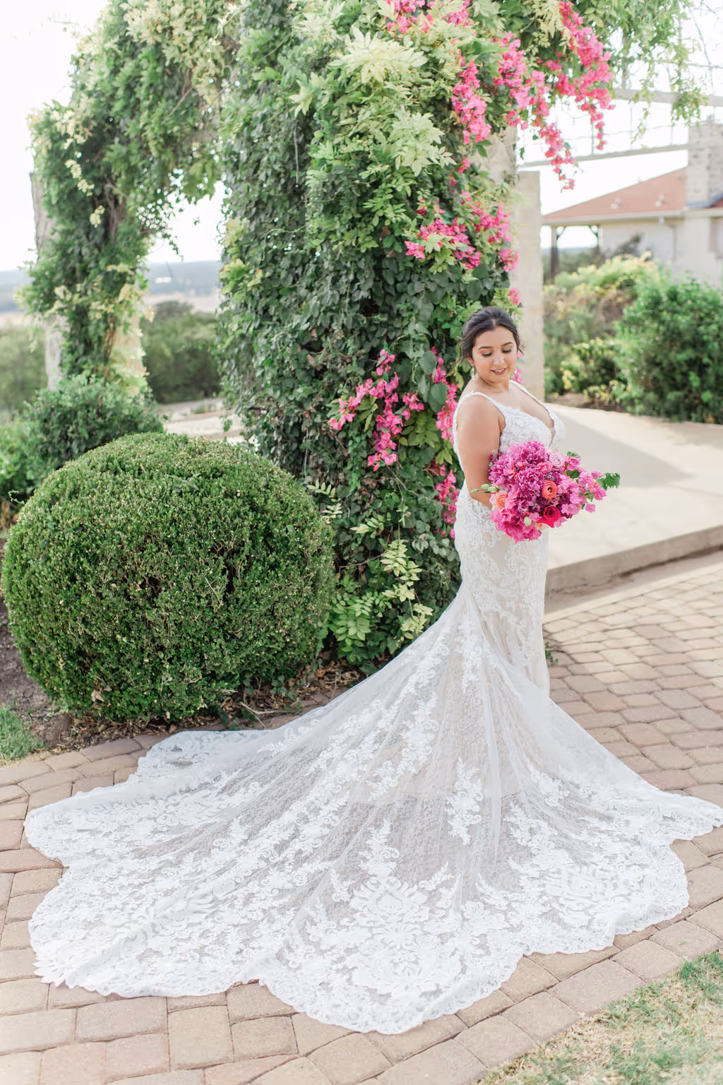 Vintage Villas is located right in front of Lake Travis 20 miles from Austin with lake views from the ceremony to the reception. With all of the summer festivities, our sweet couple's favorite place in the world was Greece, so we brought all the Greece feels to their Texas hill country wedding day. We used bougainvillea's as the main flower with all of the hot pink flower tones to heat up the summer love. Our favorite part of their wedding day was their show stopping awe factor chandelier installation with a matching sweetheart table to accommodate. We did a mixture of eclectic bud vases and flower arrangements to create a diverse table scape and highlight the reception guest table flowers. They had the most fresh flowers in all of Austin with the BEST service from their vendor team. Eclipse Events Co. coordinated the event and did a spectacular job tying in the wedding theme and April Mae Creative was able to capture all fo the details to bring them to life forever. Austin is not just the capital of TExas but also the wedding capital of Texas and we are so excited to bring new hot wedding colors and tones to you for wedding and or event inspiration for your next event! HEre are the vendors who brought their wedding day to life:
