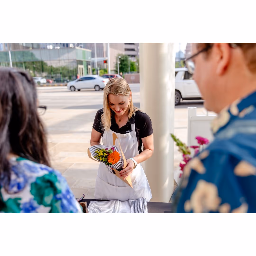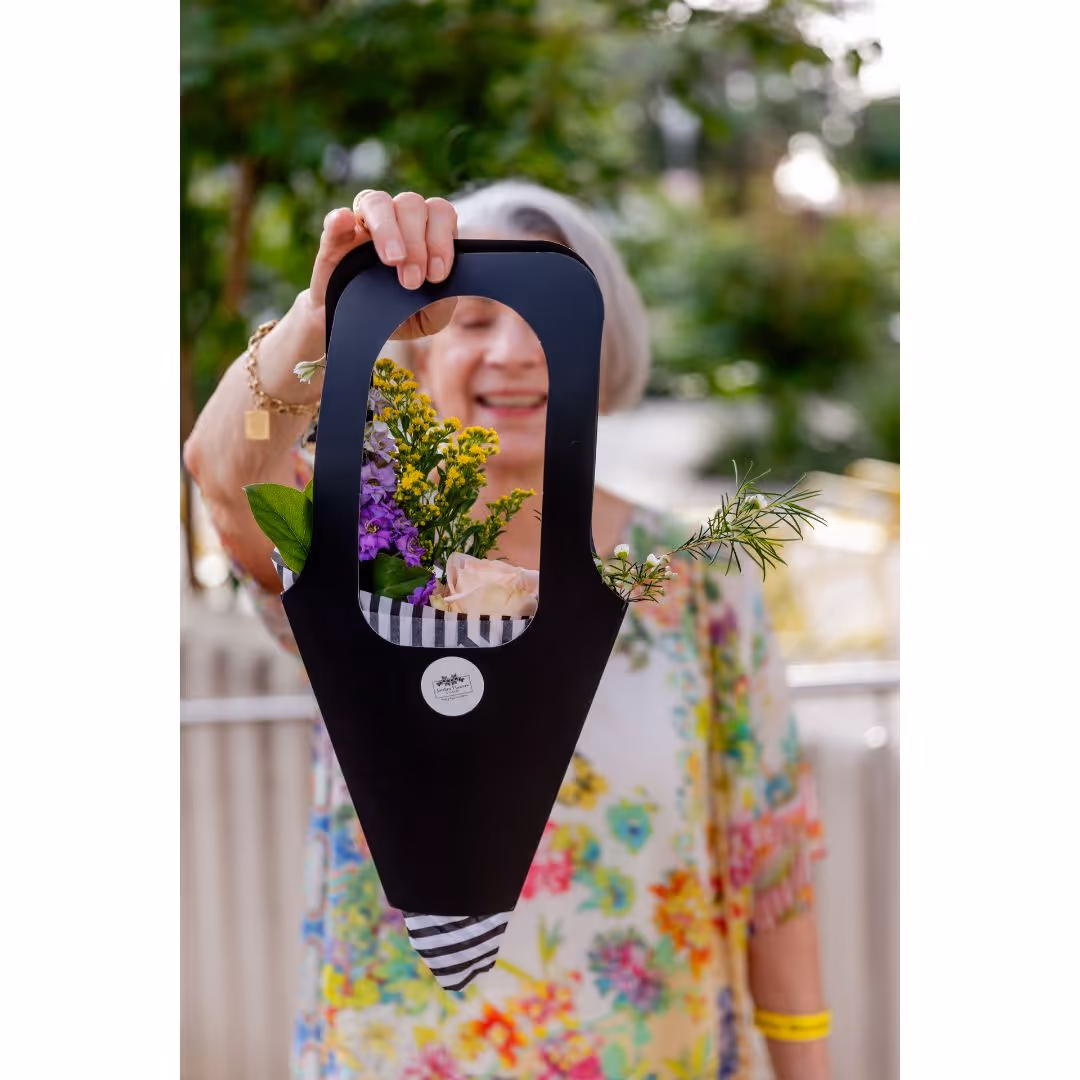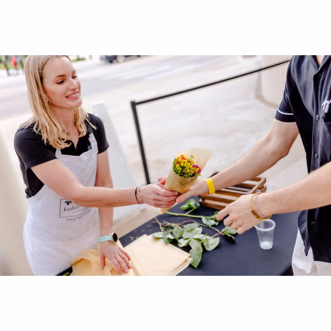 To elevate the experience, we paid close attention to every detail. Each hand-picked bouquet was expertly wrapped by our team using custom wrapping paper and ribbons, showcasing our unique branding. These beautiful arrangements were then tucked into our convenient handheld flower bags, making them easy for guests to carry and enjoy for days after the party.