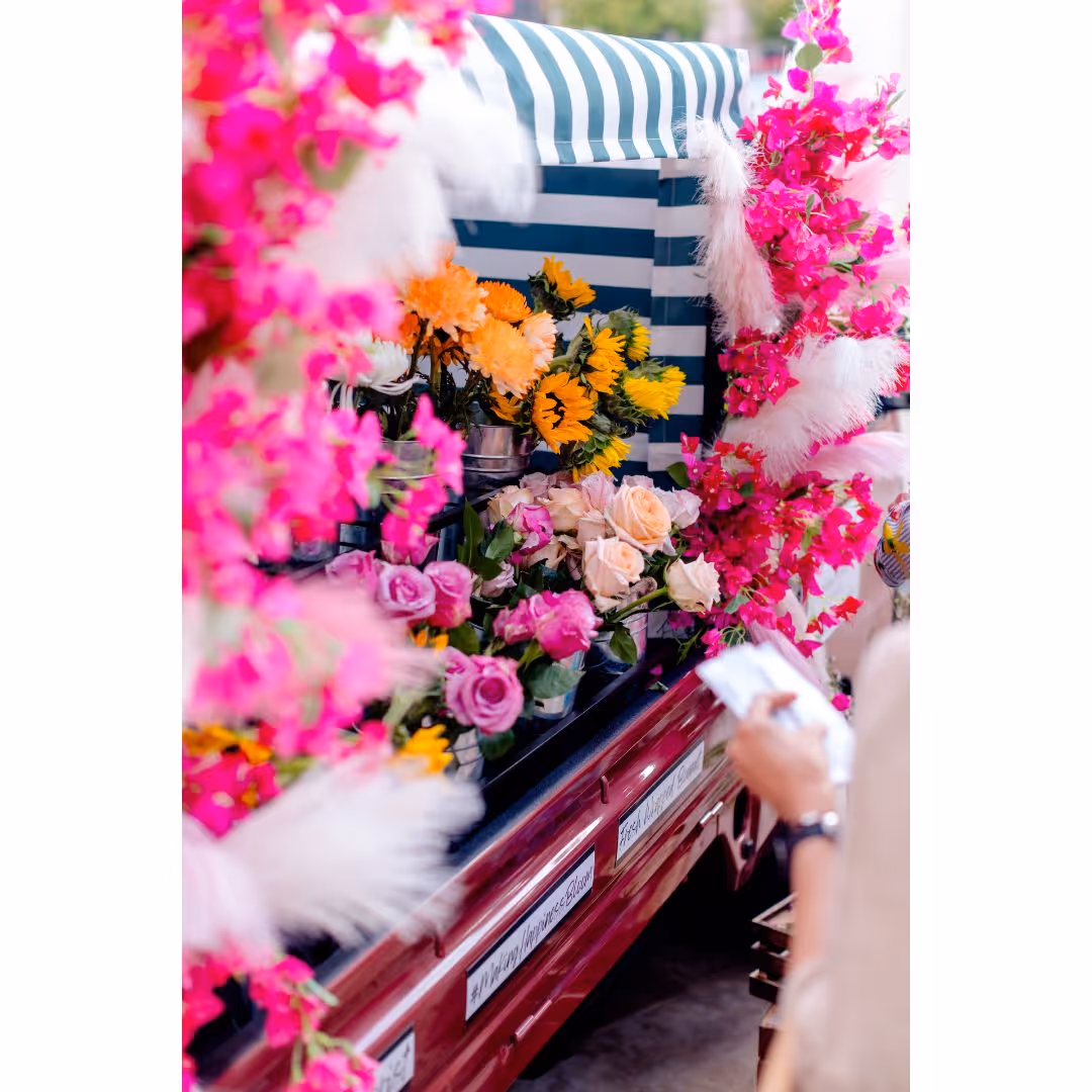 The concept was simple yet brilliant: a flower bar where guests could play the role of florist! Our friendly "budtenders" were on hand at both Rosie and the cart to guide guests as they picked out their favorite blooms. From vibrant roses to delicate wildflowers, the selection was abundant, allowing for endless creative combinations.