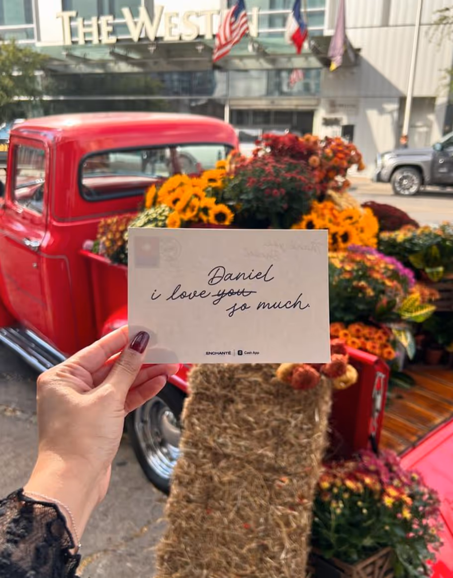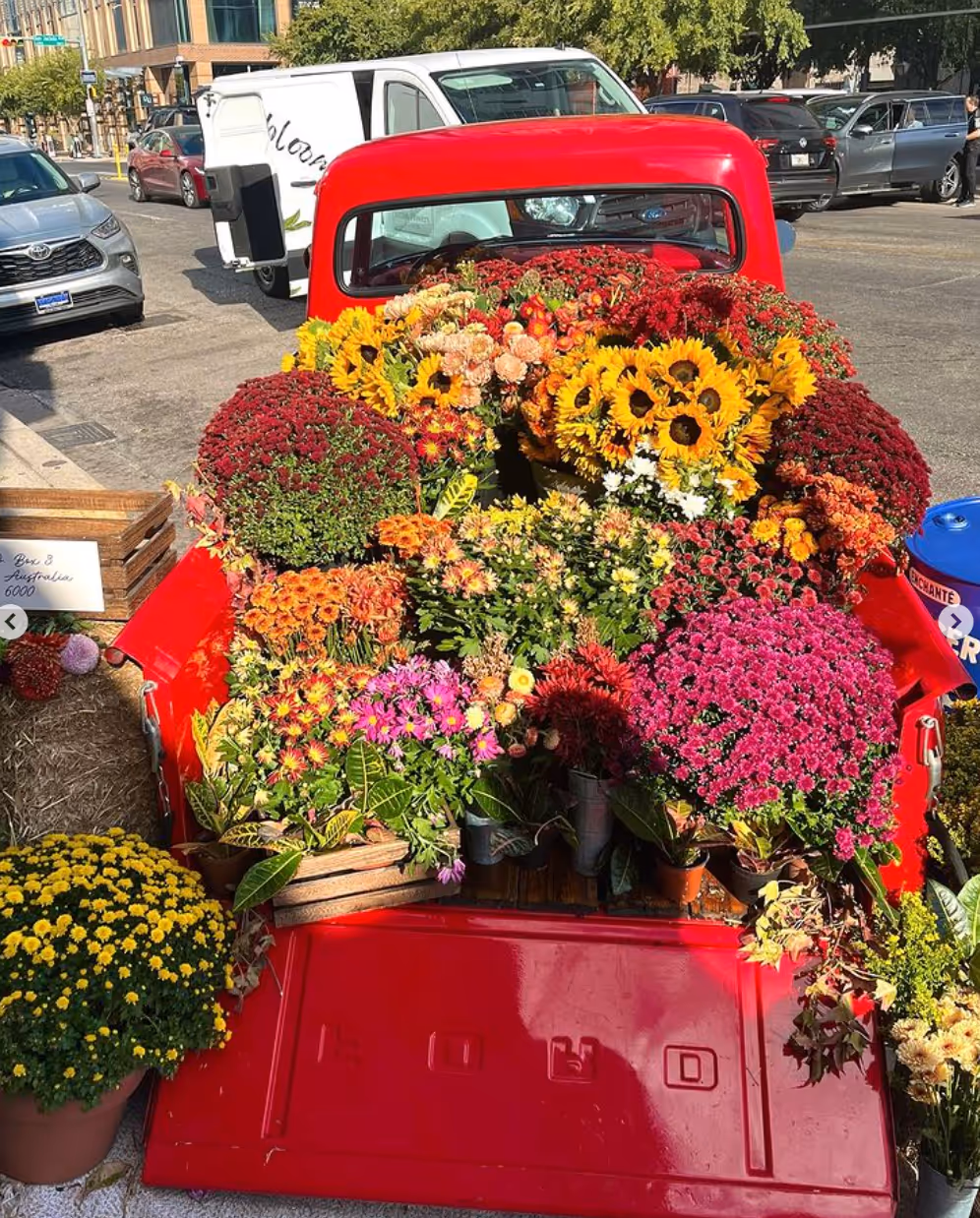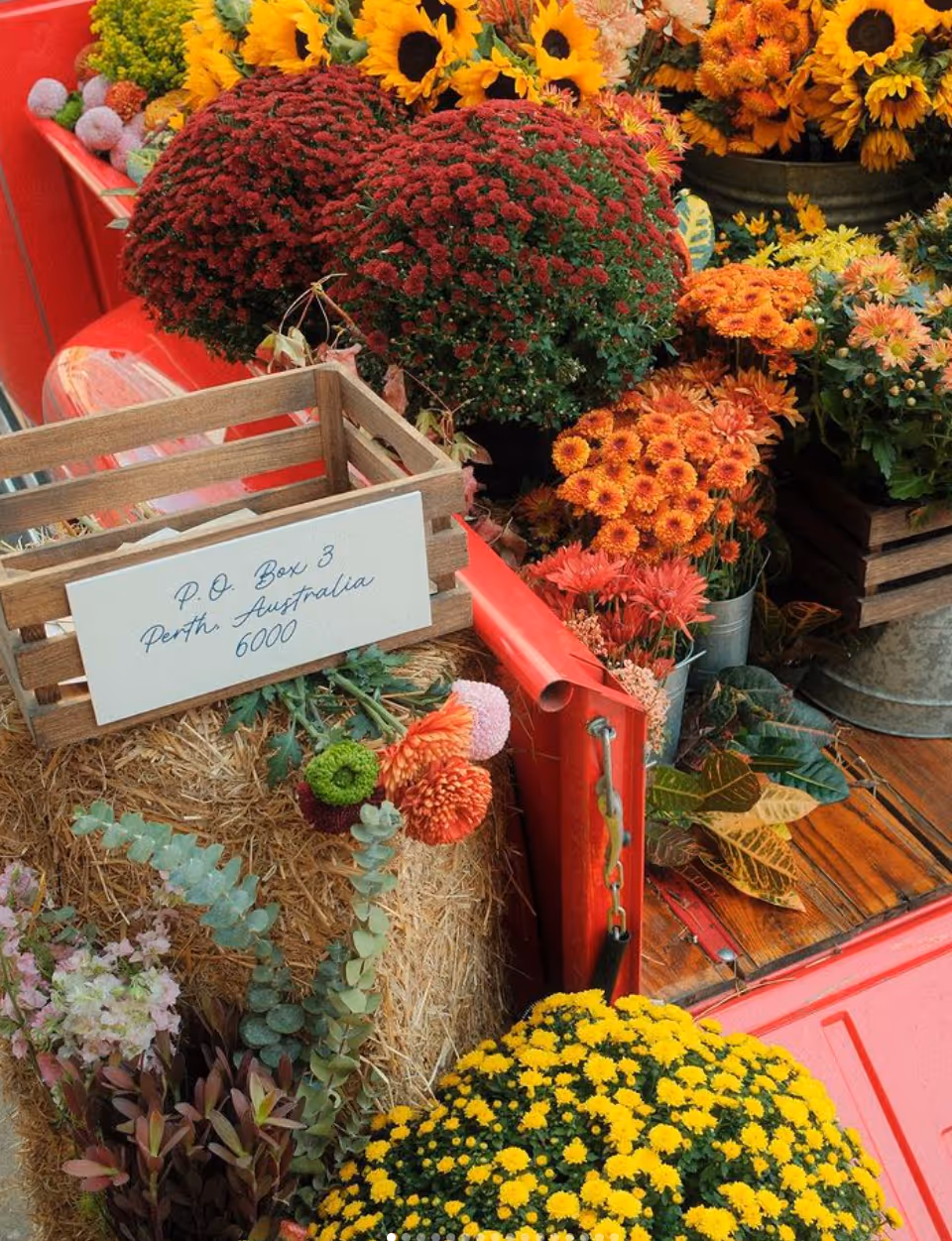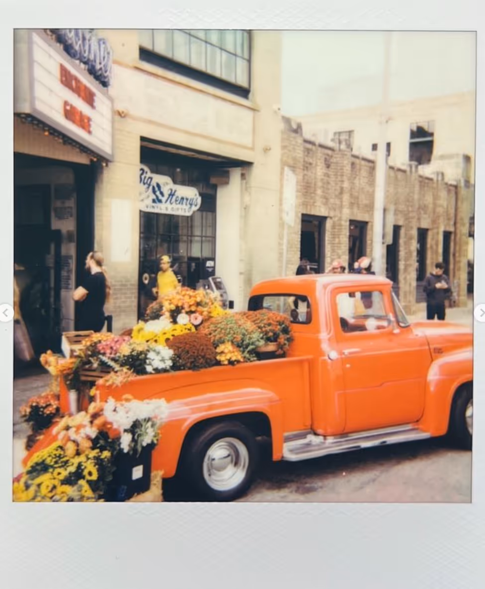 At the Daniel Ricciardo Enchanté pop-up at Antone’s in Austin, Texas, Jordan Flowers & Events delivered a breathtaking floral installation that became the star of the evening. The centerpiece was a stunning red vintage Ford truck, its rustic charm transformed into an exquisite fall floral display.