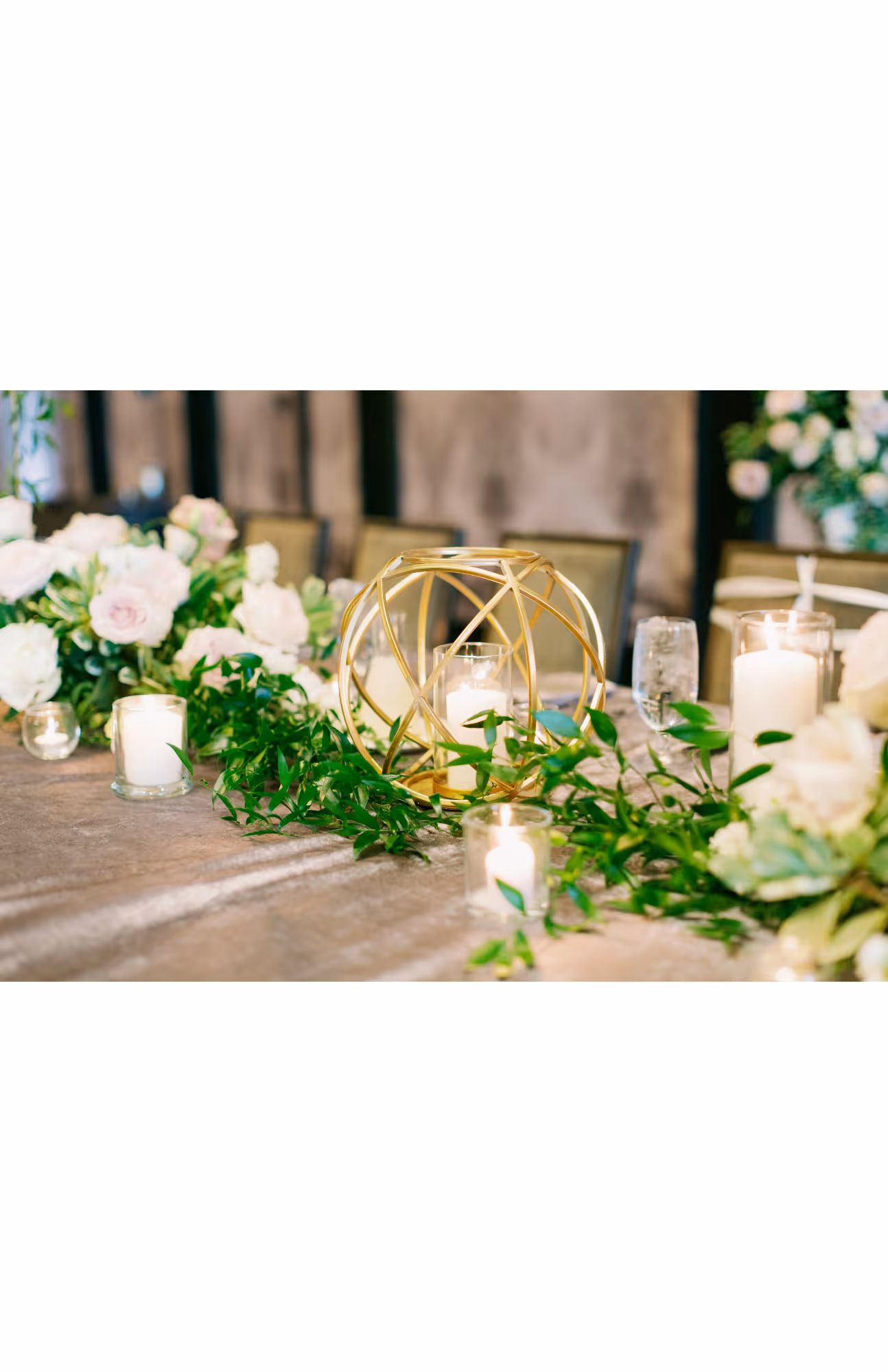 For the tables, we designed a mix of centerpieces that were both elegant and warm. We incorporated a variety of our rental vases filled with beautiful blooms, and intermingled them with an array of candles. The combination of candlelight and floral arrangements created a cozy and intimate ambiance for their guests to enjoy.