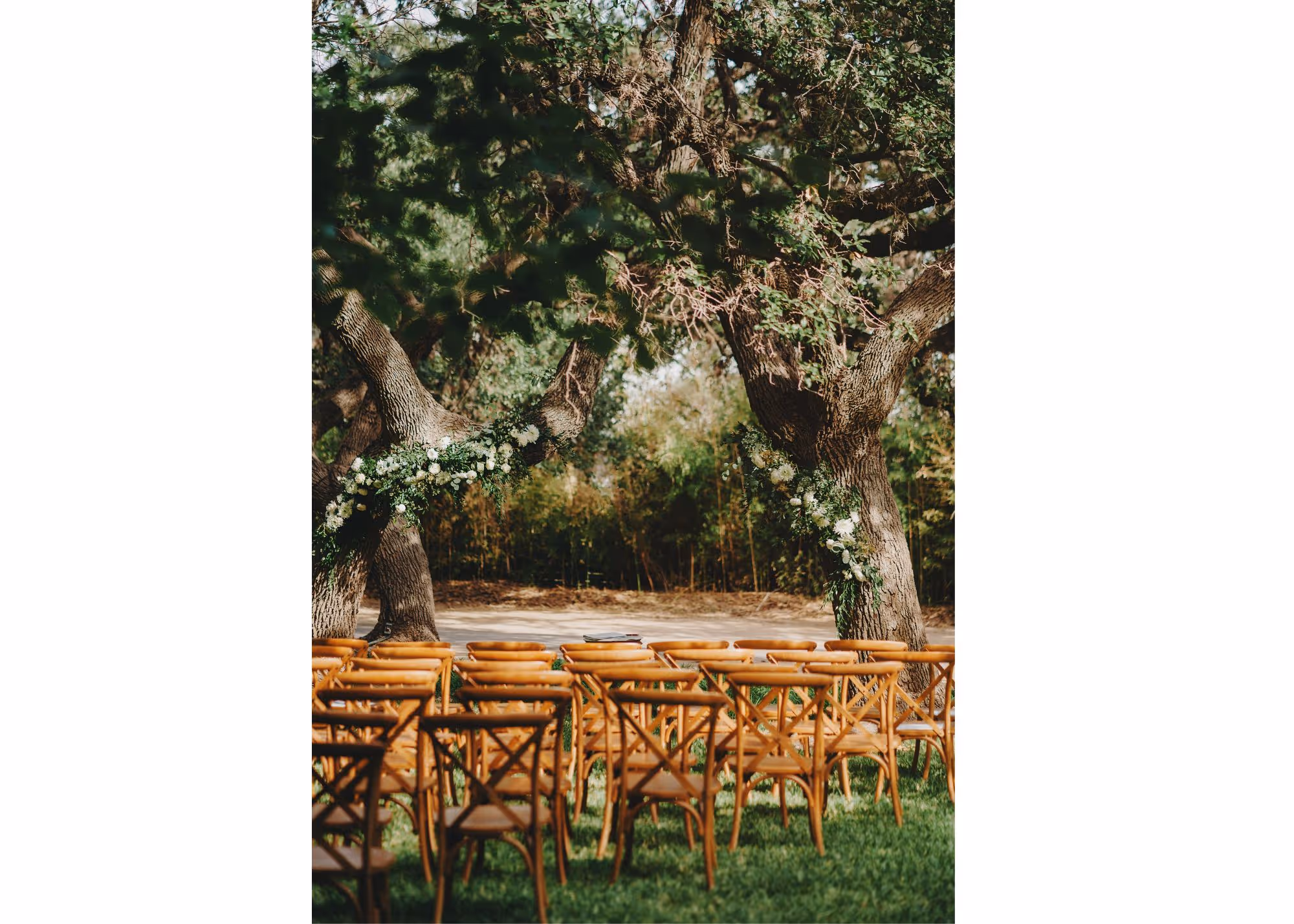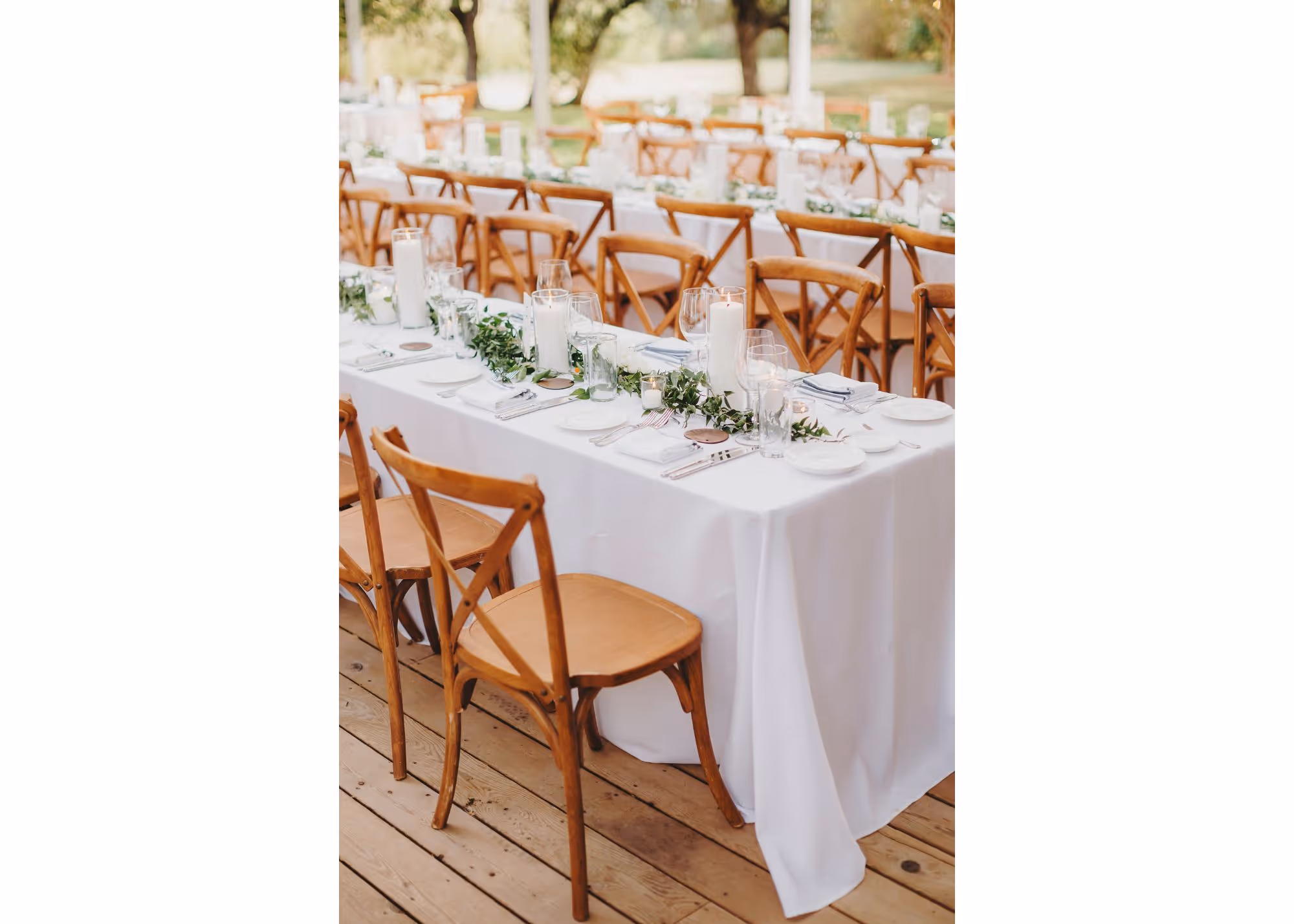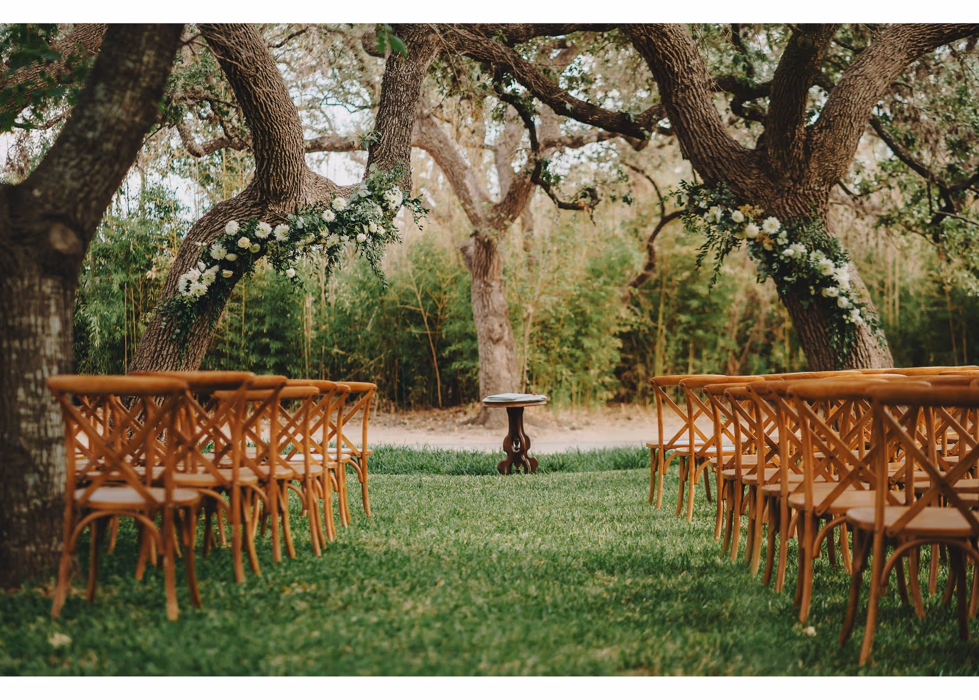 Matties Green Pastures in the perfect classic Austin venue that is hidden under sprawling oaks filled with peacocks' greens and amazing food! This downtown Austin restaurant and venue is Austin's perfect hidden historical gems. When you are here you would never feel like you are in downtown Austin! Perfect for brunch dinner and weddings this venue is stunning and timeless. Gretchen and Tobias wedding day matched the venue so perfectly. With an elegant ivory and ivory premium flower and color tones along with natural emerald greenery their wedding day was one we will never forget. The couple got married under their enchanted oaks and we designed fresh floral attachment installation that grew up and around the limbs to frame in the wedding ceremony space and the couple. At their reception, the couple had beautiful white linens that the restaurant provided set with family style dining services and candlelight. We used natural greenery to highlight the table and create a romantic rectangle guest table. The harvest tables were set as to not get in the way for the guests dining and to really pop against the white linens with the beautiful live greenery touch. The sweetheart table was one of our favorites with natural greenery tapering off the sweetheart table cascading down towards the ground filled with candles. Live events in Austin are always great but weddings at Matties are forever elegant and timeless. This color palette of ivory white and emerald natural greenery was flawless. Making happiness bloom at Matties and making sure to keep the best Austin flowers and florists even better!