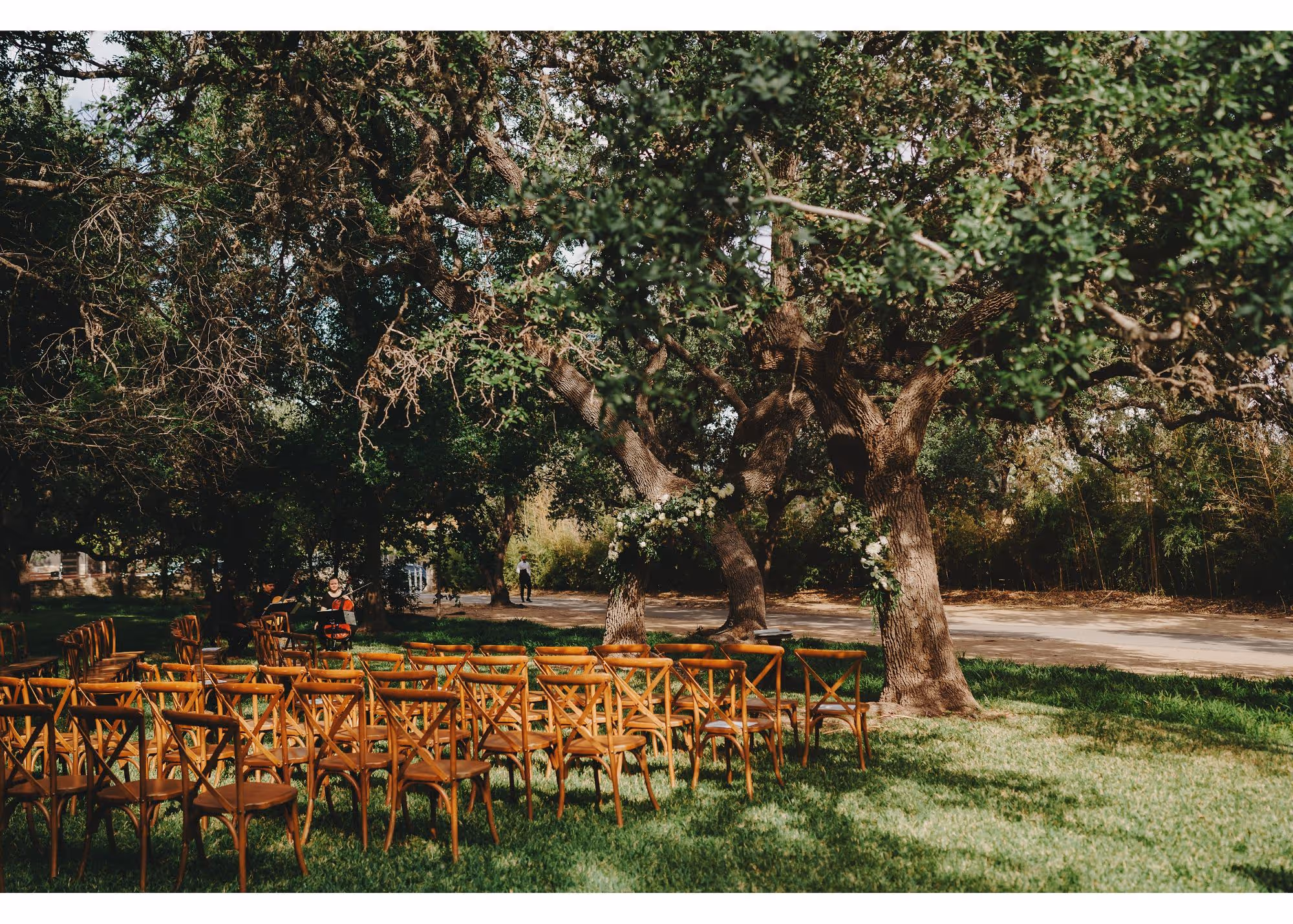 The ceremony flowers were a breathtaking display, with the wedding florist creating a lush, fresh floral arrangement that adorned a circular white stage. This unique stage became the focal point of the ceremony, where the bride and groom exchanged vows. The decor was thoughtfully designed, featuring circular, lush, round ottoman couches in a striking mustard yellow to match the couple's color palette. The Spanish Tuscan villa style provided a romantic and timeless backdrop for this new wedding trend.