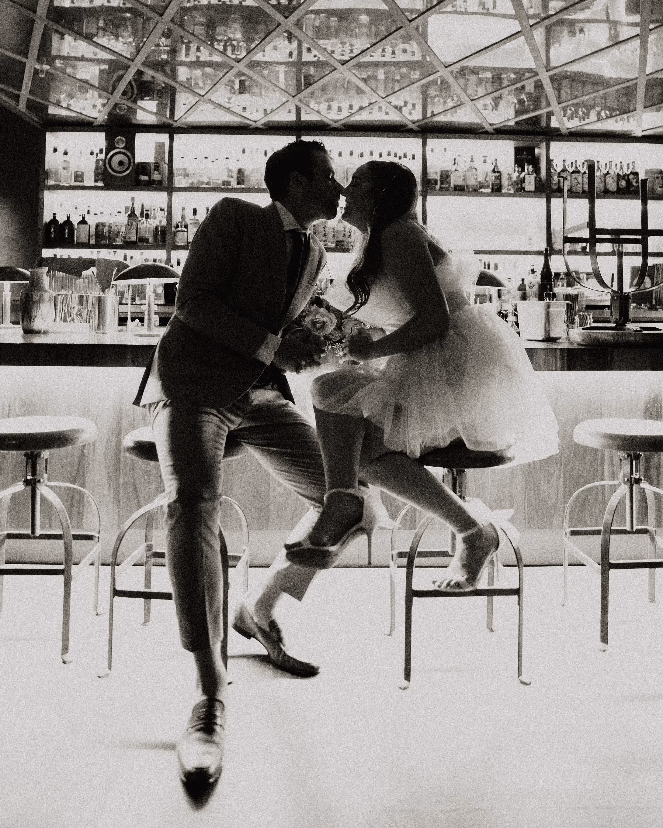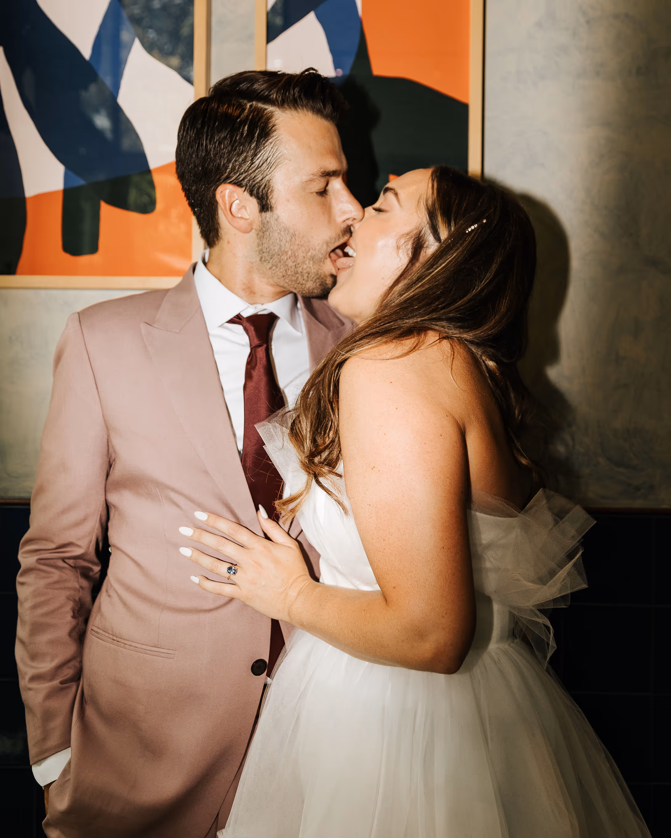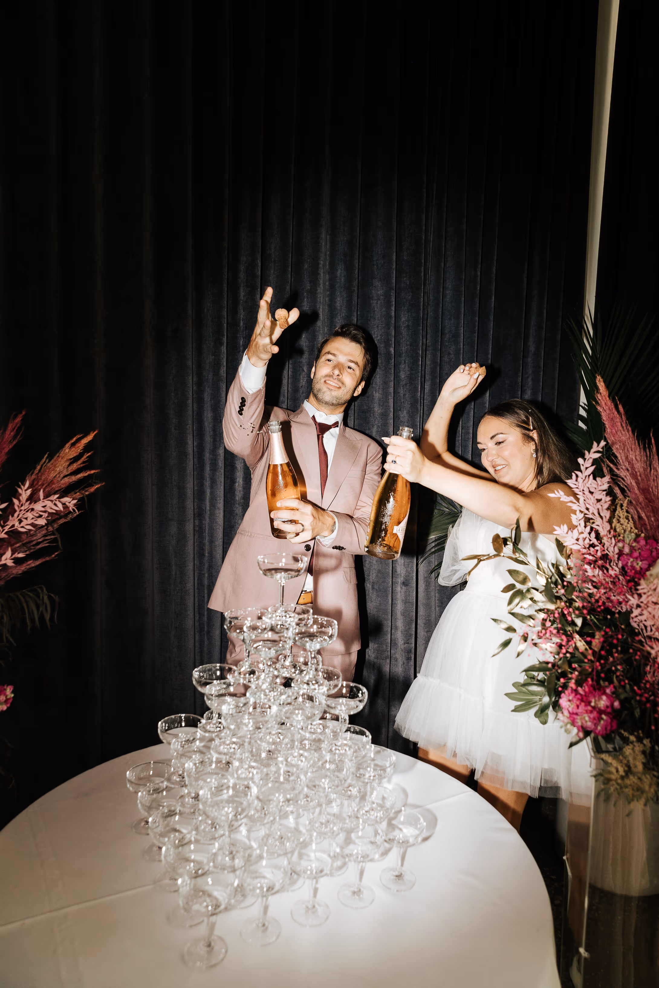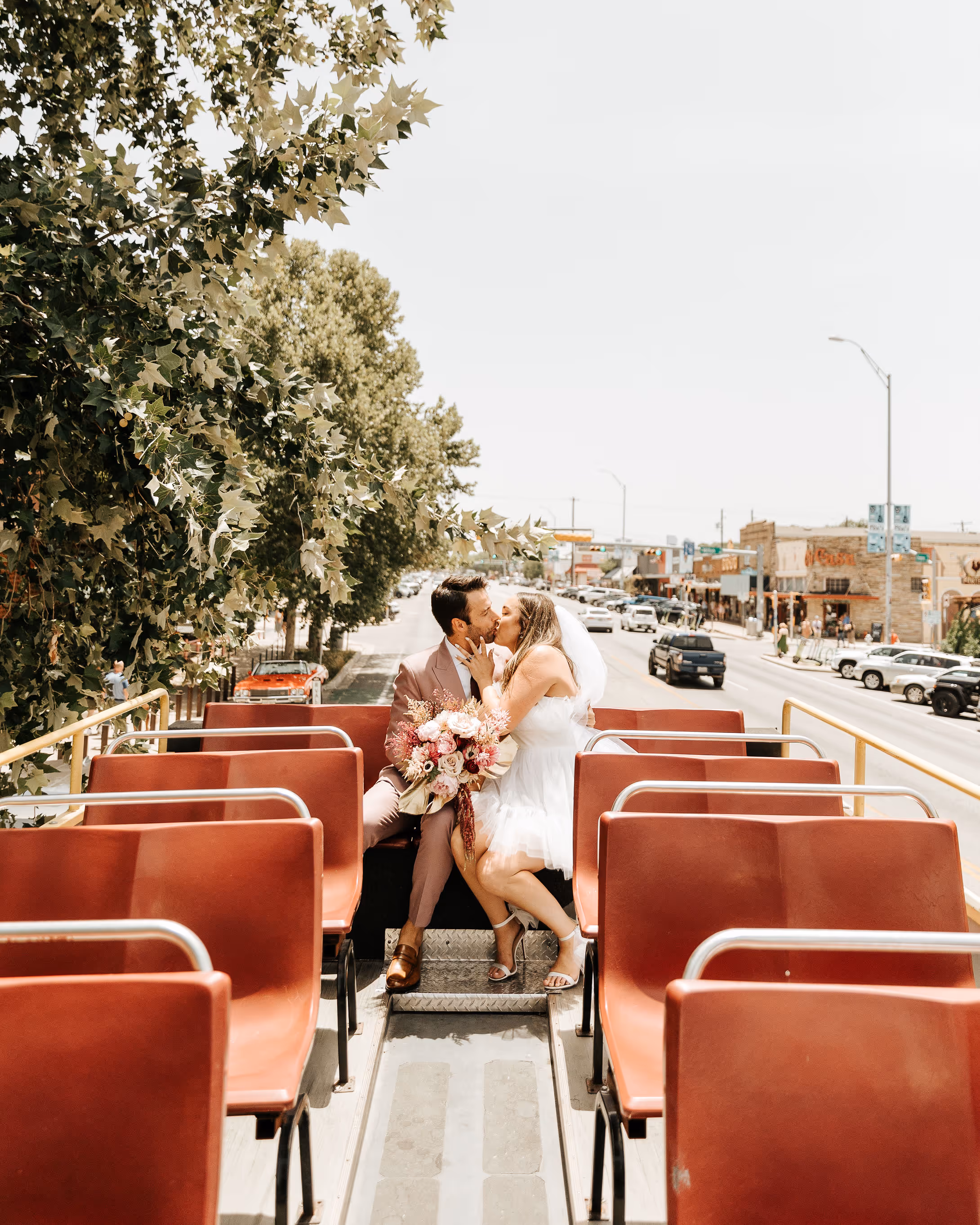 OMG! Check out this amazing fun, colorful, Sunday, Funday, Brunch wedding day of Jaycie and Bo's at South Congress hotel!!! We did an AMAZING flower ceiling installation that was the perfect for their reception lounge area! Their wedding day was unlike any other wedding we have done and we freaking loved it!!! Champagne before noon on Sunday? No formal sit down dinner, all super fun, chill, and plenty of rocking! The ceremony flowers were reused at the reception for the champagne tower. Instead of the traditional sit down meal, South Congress Hotel had plenty of passed apps, and food stations set up for the guest to mingle, eat, and dance. A telephone wase set up for guests to leave messages for the couple and we used all hot pink and fuscia! The wedding flowers were like something from a Malibu Barbie wedding...in our dreams;) Take a look at this incredible wedding! Yes flower ceiling install is real and it was a real awe factor. The install was hanging from 20 ft ceiling and was 12 ft long which required 3 florists. Wedding Vendors who also brought this event to life:
