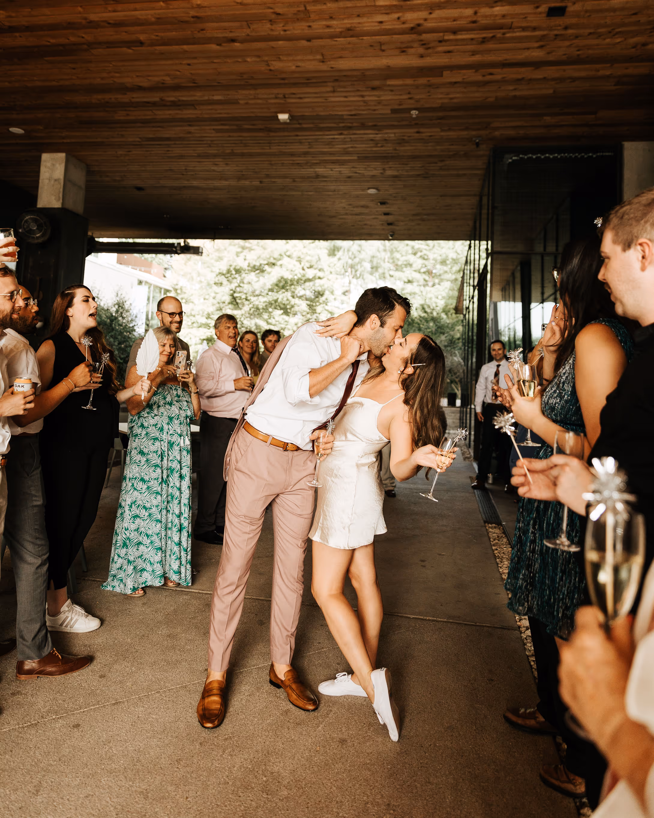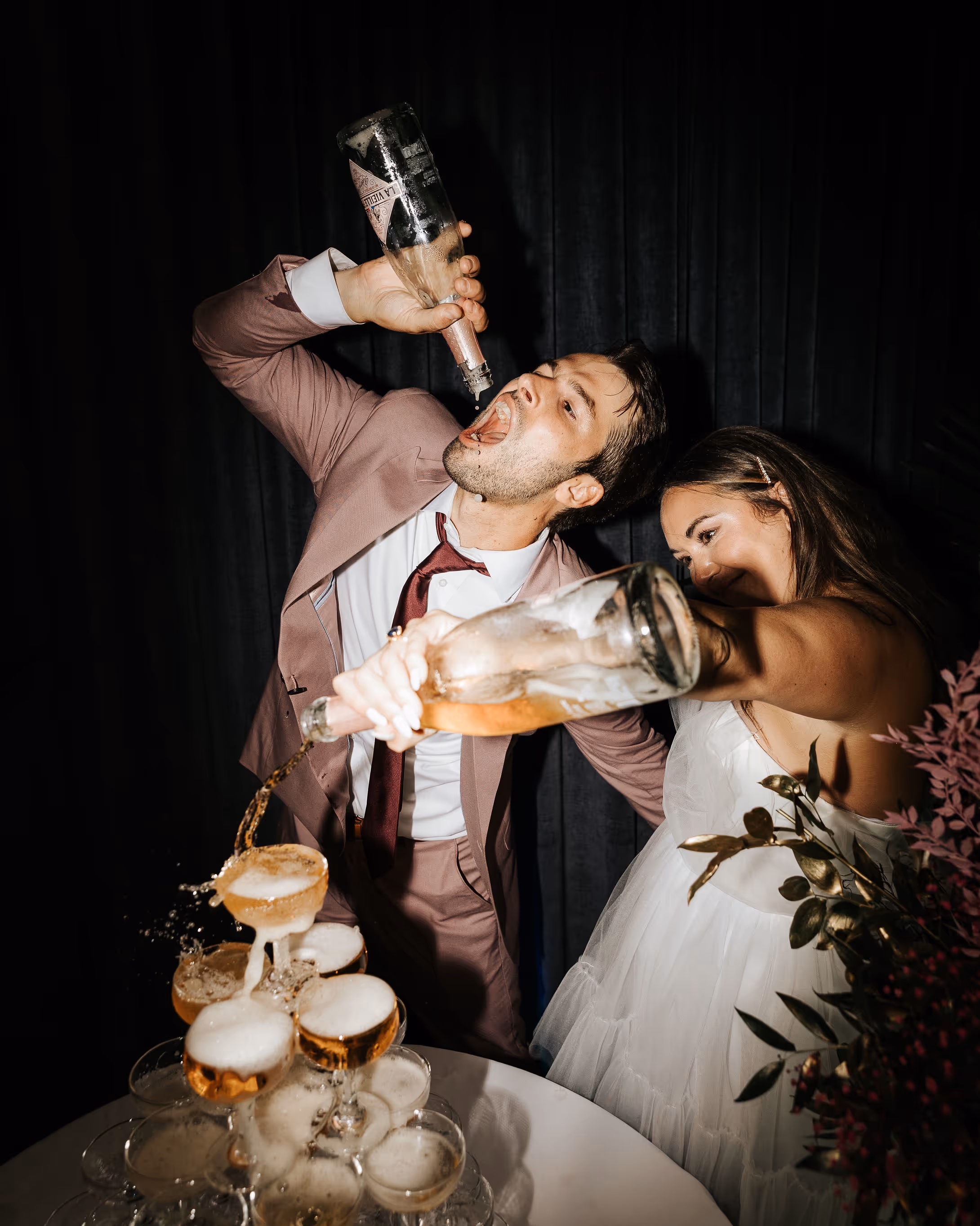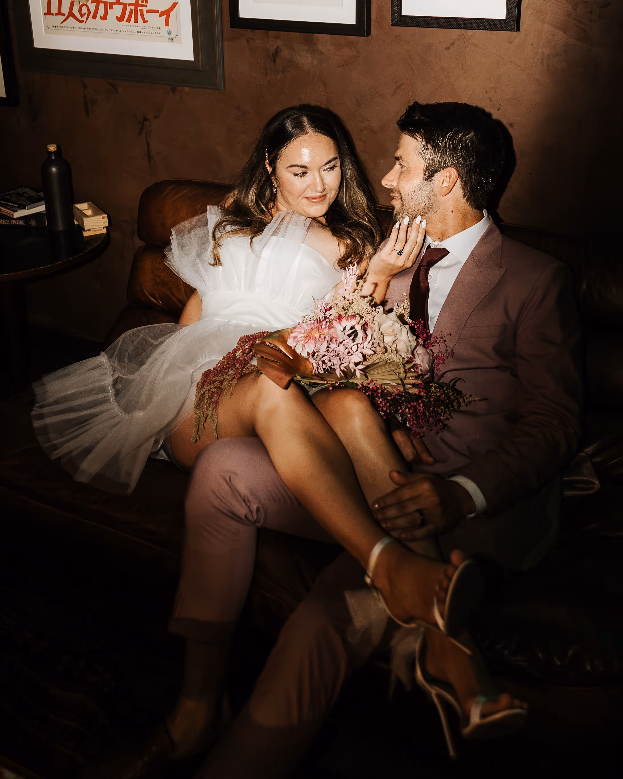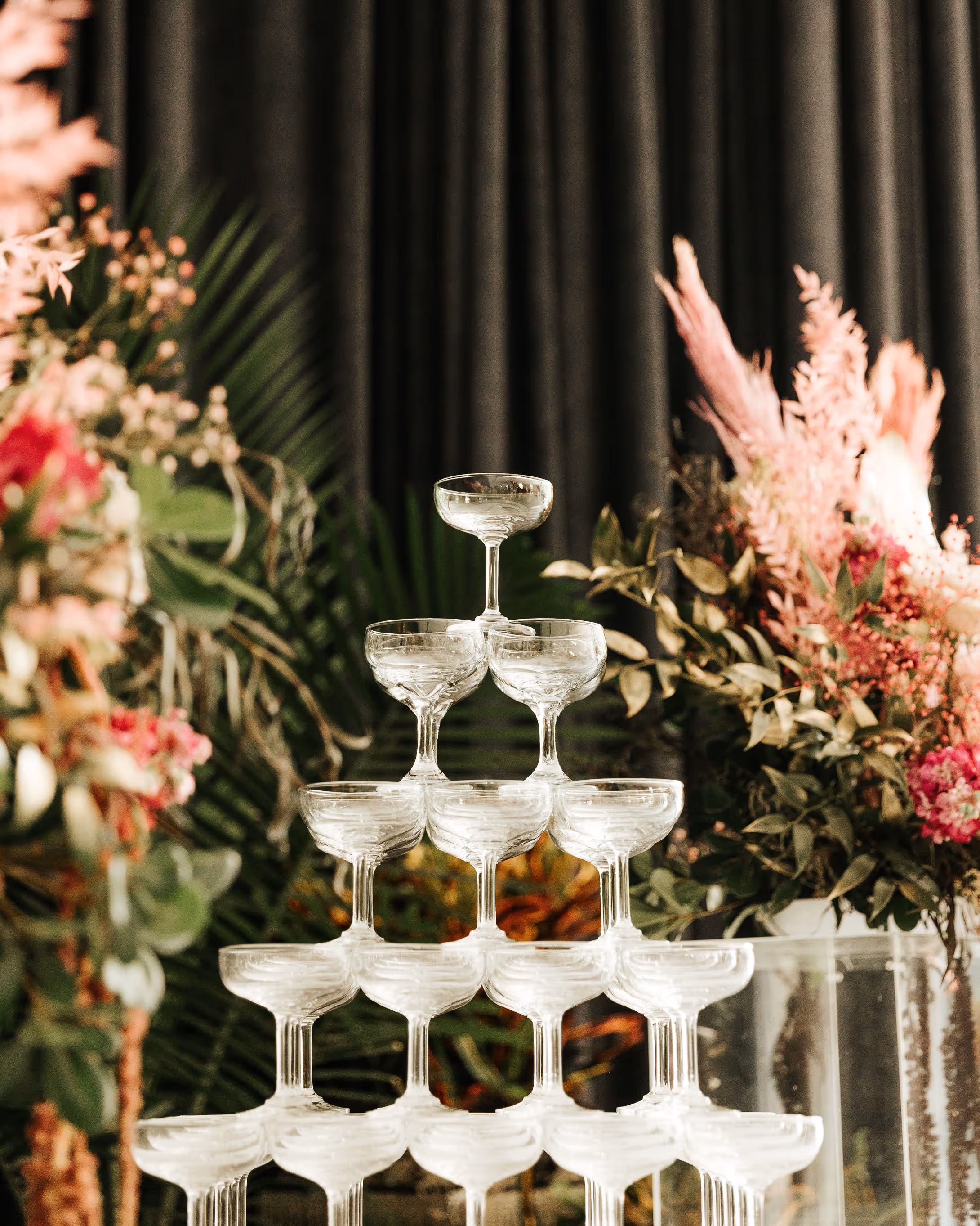 OMG! Check out this amazing fun, colorful, Sunday, Funday, Brunch wedding day of Jaycie and Bo's at South Congress hotel!!! We did an AMAZING flower ceiling installation that was the perfect for their reception lounge area! Their wedding day was unlike any other wedding we have done and we freaking loved it!!! Champagne before noon on Sunday? No formal sit down dinner, all super fun, chill, and plenty of rocking! The ceremony flowers were reused at the reception for the champagne tower. Instead of the traditional sit down meal, South Congress Hotel had plenty of passed apps, and food stations set up for the guest to mingle, eat, and dance. A telephone wase set up for guests to leave messages for the couple and we used all hot pink and fuscia! The wedding flowers were like something from a Malibu Barbie wedding...in our dreams;) Take a look at this incredible wedding! Yes flower ceiling install is real and it was a real awe factor. The install was hanging from 20 ft ceiling and was 12 ft long which required 3 florists. Wedding Vendors who also brought this event to life: