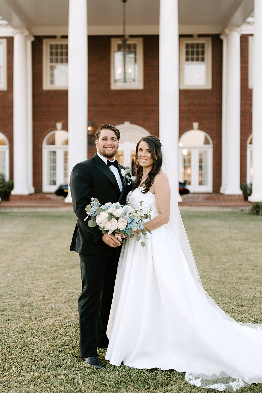 Nestled in the rolling hills of Bastrop, Texas, just outside of Austin, ColoVista Country Club served as the picturesque venue for Jordan and Colleen’s November wedding. This stunning celebration, with its timeless palette of blue, white, and ivory accented by eucalyptus greenery, was a true testament to love, elegance, and nature’s beauty.
