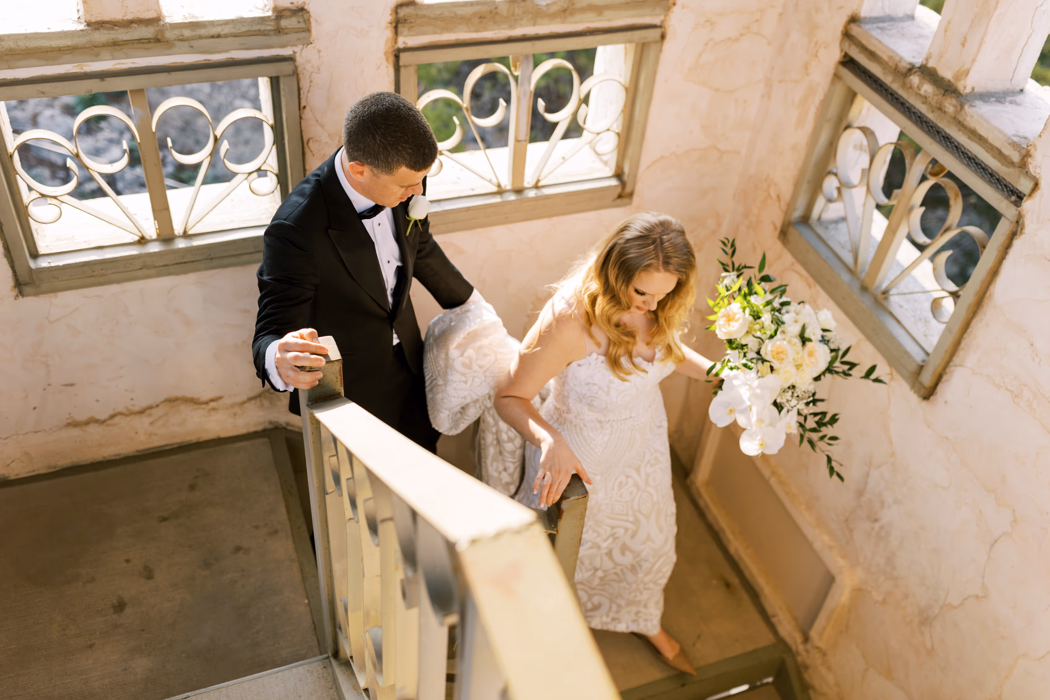 Stepping into Villa Antonia, you're immediately transported to a world of romance, and for this unforgettable wedding, it was transformed into an ethereal dream woven with white, blush, and navy accents. Every detail, from the grand staircase to the intimate tea ceremony, spoke of elegance and personalized charm, all beautifully captured by Mars and Moon Photography.