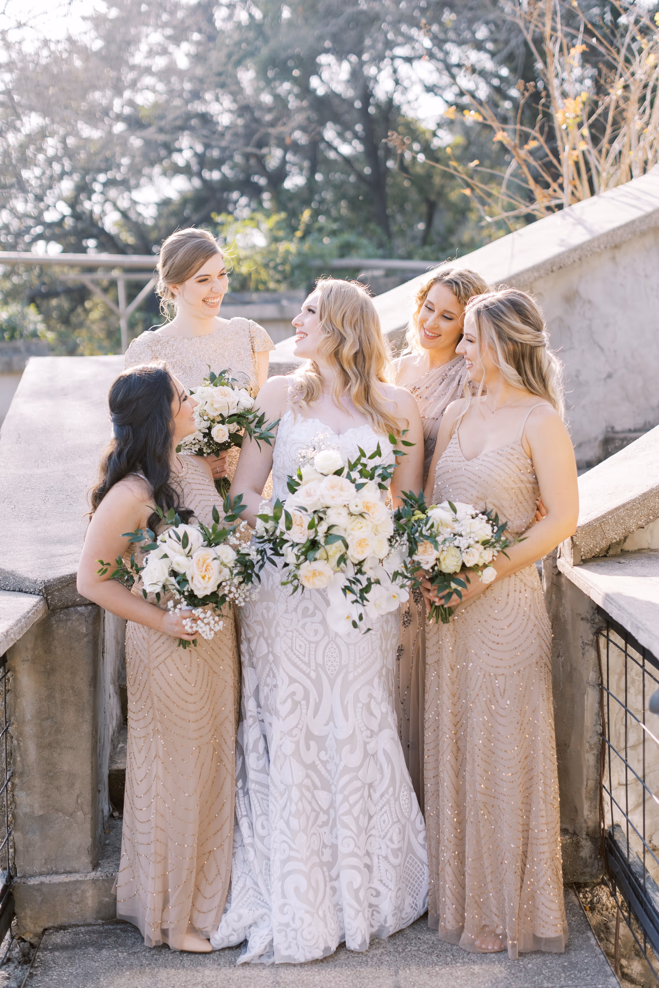 Villa Antonia, a Spanish Tuscan-style estate nestled in the heart of the Texas Hill Country, set the stage for a truly magical wedding day. The air was filled with anticipation as guests gathered for the ceremony, which was held downstairs in the enchanting butterfly garden.