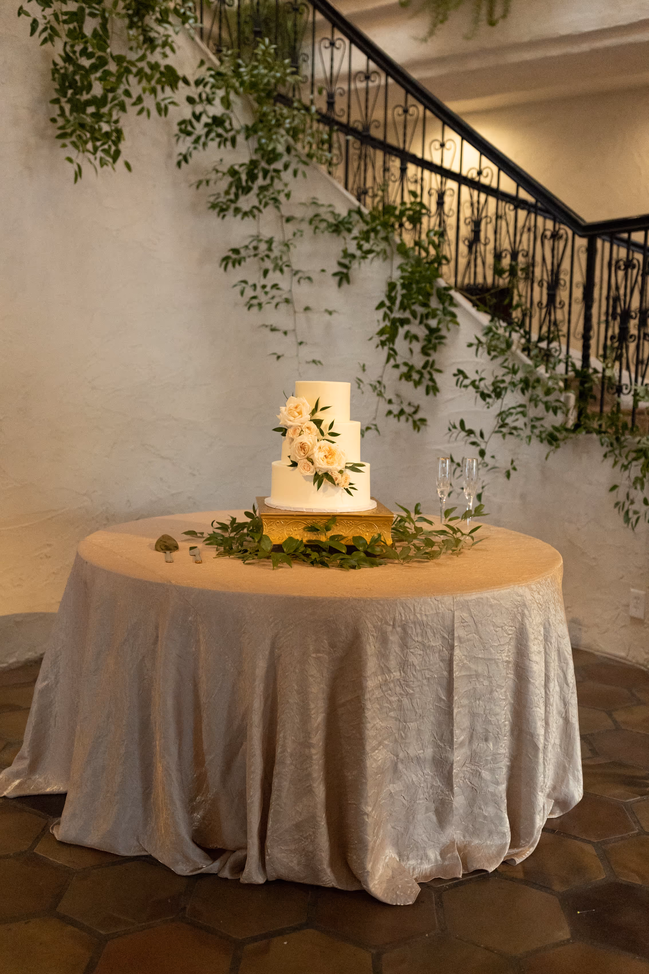 Imagine walking into a space where lush greenery cascaded down the majestic stairs, creating a living aisle of natural beauty. Delicate flowers nestled within the staircase railing, adding pops of color and fragrance that delighted guests as they arrived. The enchantment continued at the entrance to the Butterfly Garden, where more stunning floral arrangements welcomed everyone into a truly magical space.