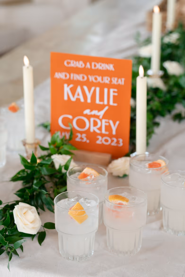 Following the heartfelt ceremony, guests moved to the reception, where candlelight flickered, casting a warm glow over the tables. The reception centerpieces were exquisite, with table flowers continuing the elegant theme and adding a touch of romance to the celebration. The reception decor was a perfect blend of rustic charm and sophisticated elegance.