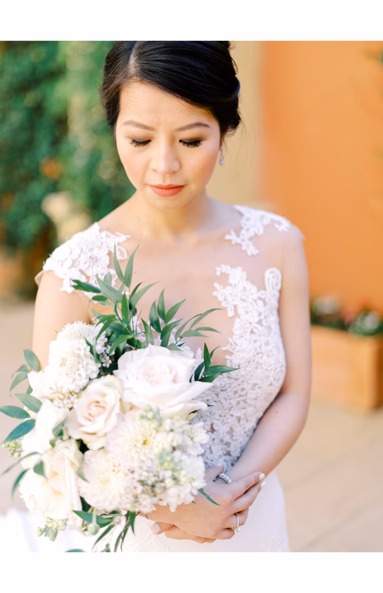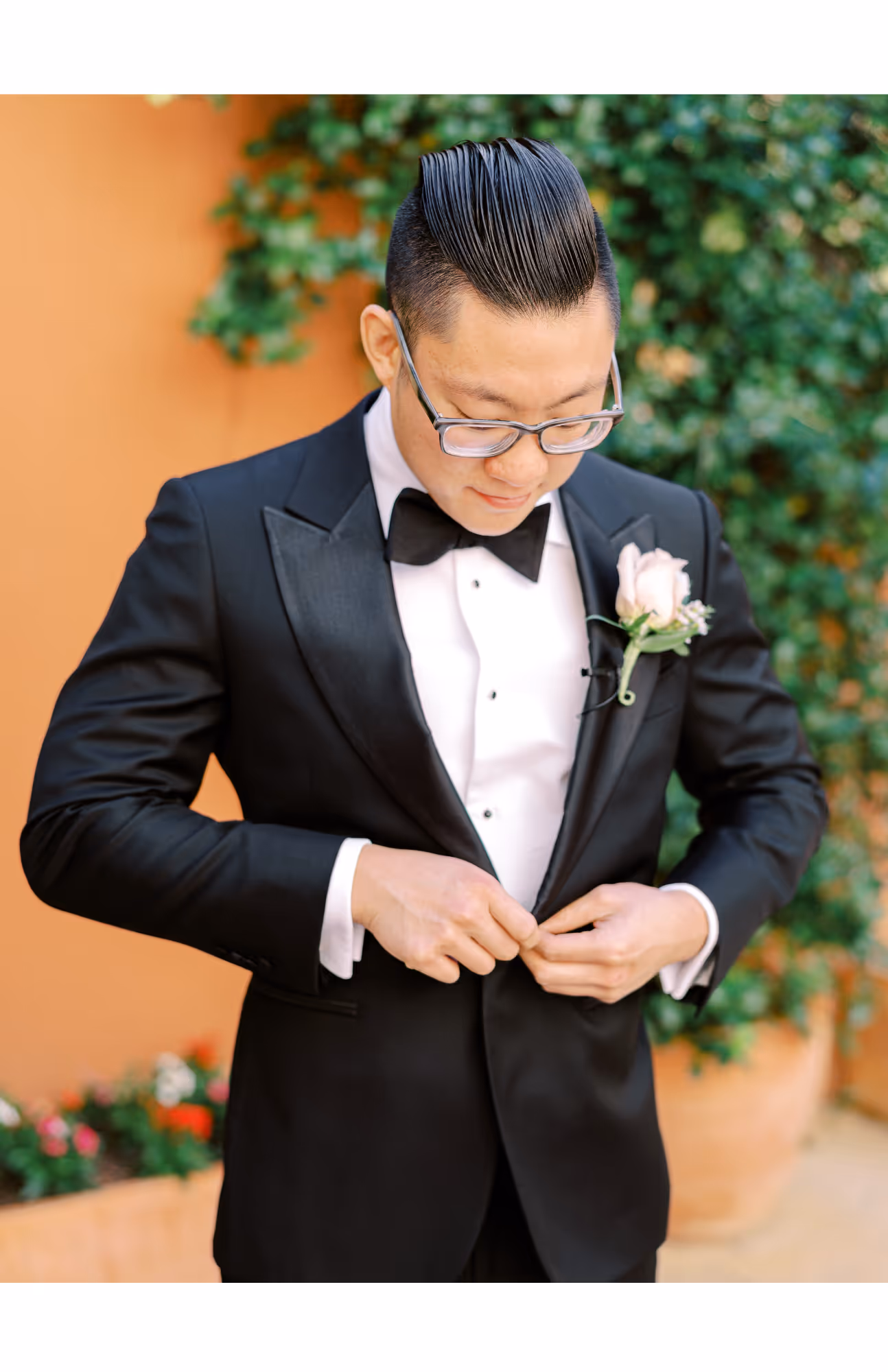 The Hotel Granduca of Austin made the perfect location for this classic wedding with cultural elements. The color palette of blush and dust blue paired perfectly with this couple’s outdoor ceremony’s architecture. Before the big day, Na and Joshua privately exchanged their vows at the hotel and then celebrated with a traditional tea ceremony. During the serving, the couple expressed their gratitude and paid respect to their elders and family members. The couple looked riveting in red, and we couldn’t wait to see their wedding day attire! Na added to all the elegant elements of her wedding in her lace mermaid gown with a tremendous train. Beside the bride, Na’s bridesmaids wore delicate, dusty blue gowns that matched the pastel-painted walls they stood in front of. The groom and his men also took on a tasteful and traditional look with their crisp black tuxedos. The ceremony was full of liveliness with impeccable ivy and radiant roses from Jordan Flowers + Events. Talk about picturesque! After saying I do, the Ou’s danced the night away to Royal Dukes Band with their closest friends and family. For more on this sweet classical wedding with cultural elements, check out the gallery below! Cheers to the happy couple!