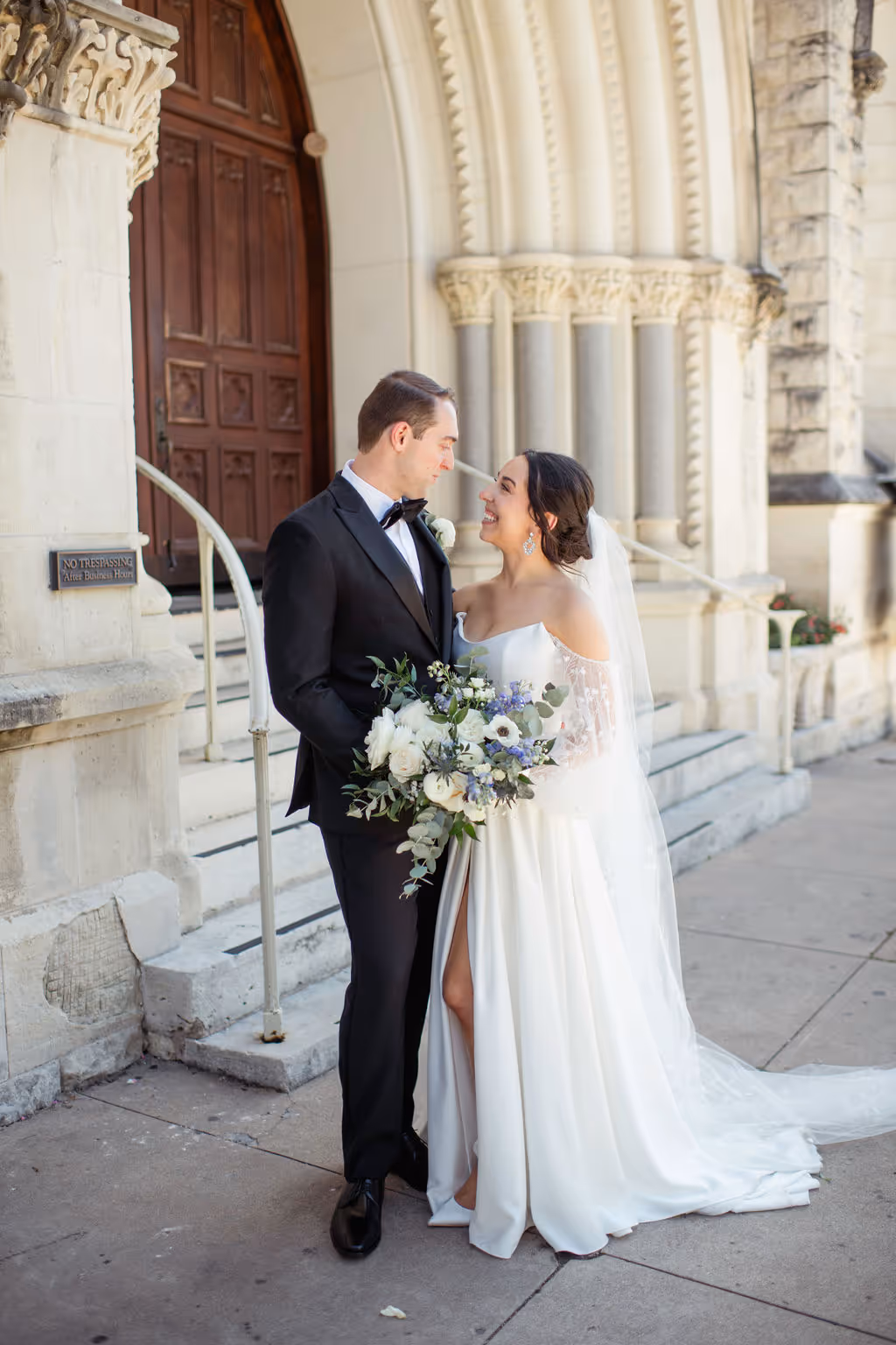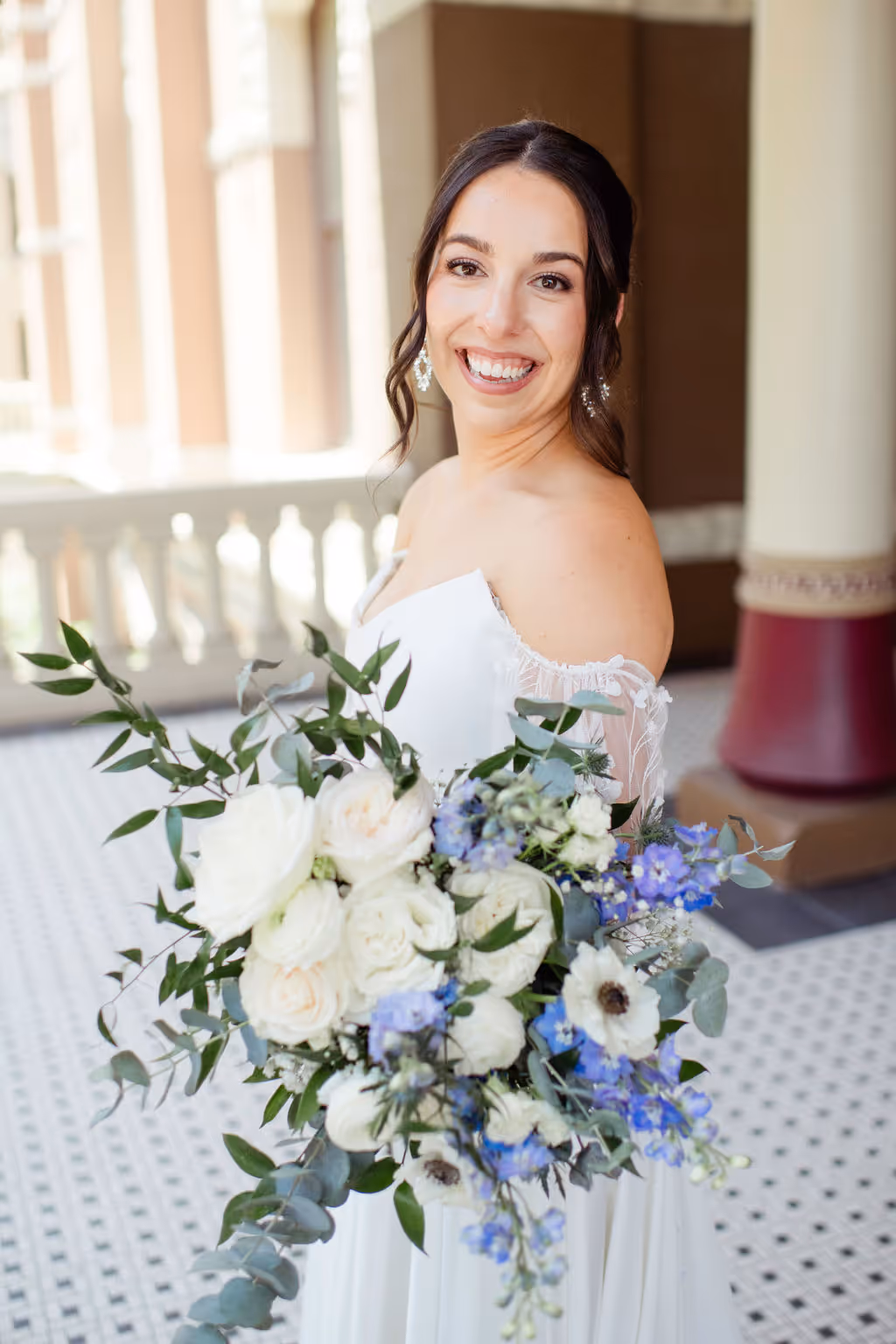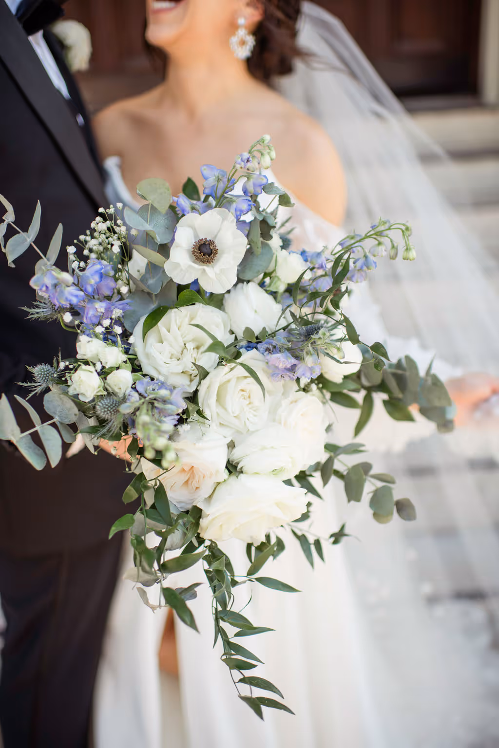Niki and Alex's wedding was a dream come true! As Austin's premier florist for weddings and live events, we were honored to create a breathtaking greenery chandelier for their special day. The light blue flower accents we incorporated added a touch of "something blue" to their color scheme, making their celebration at St. Mary Catholic Church and the Driskill Hotel even more magical.