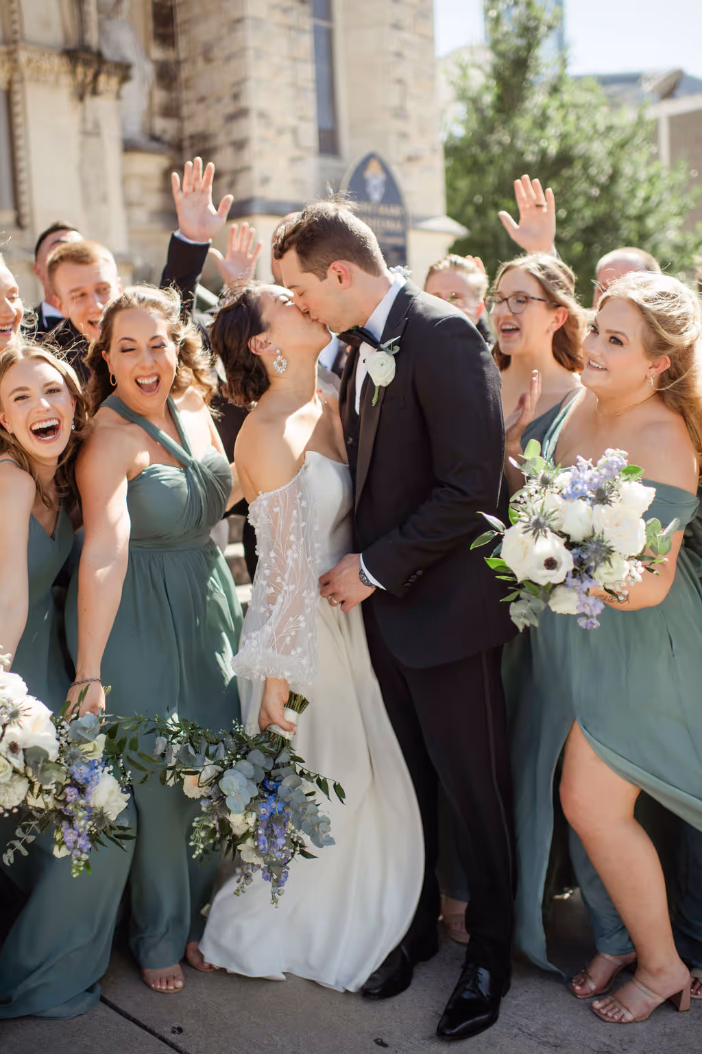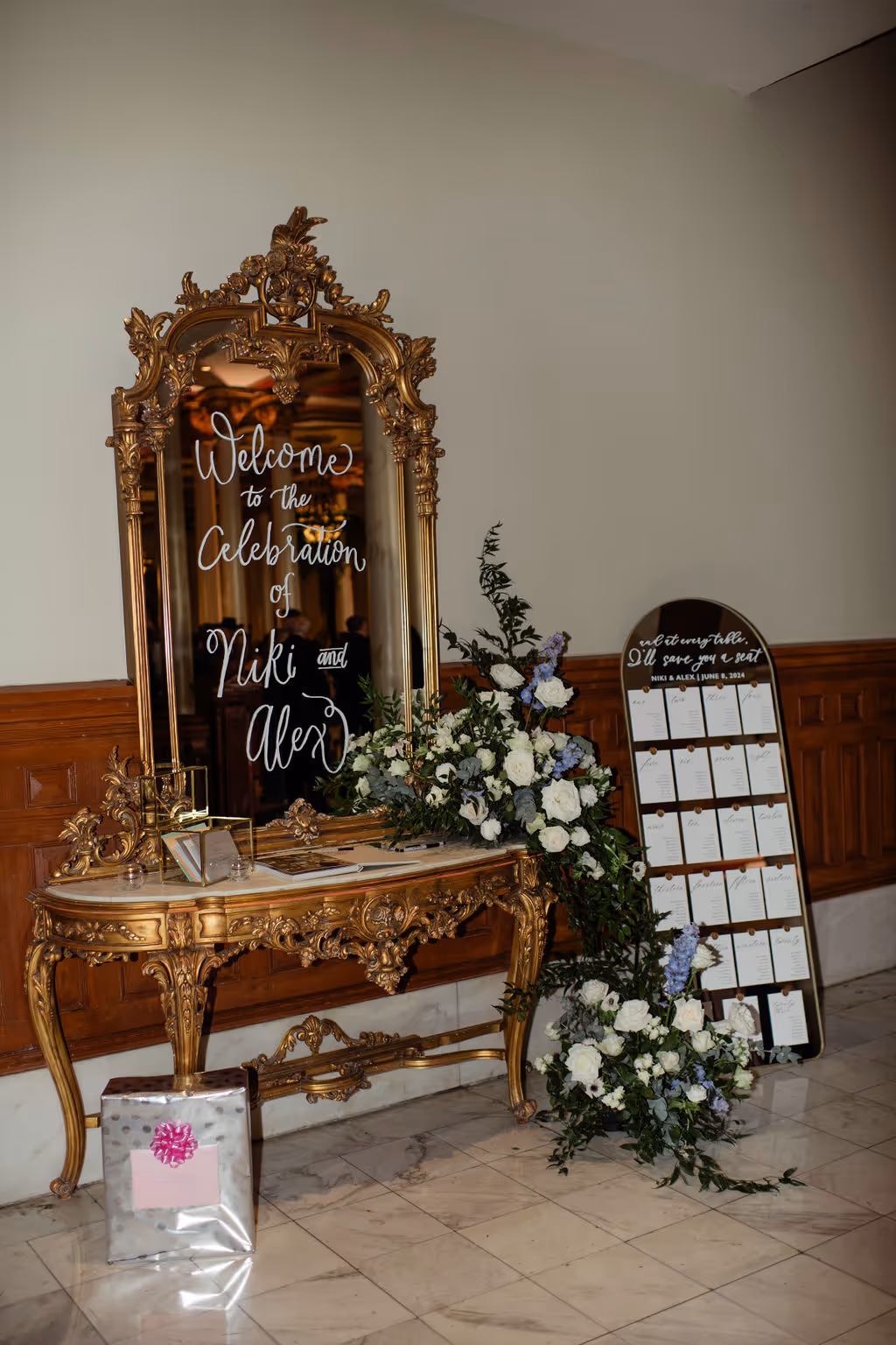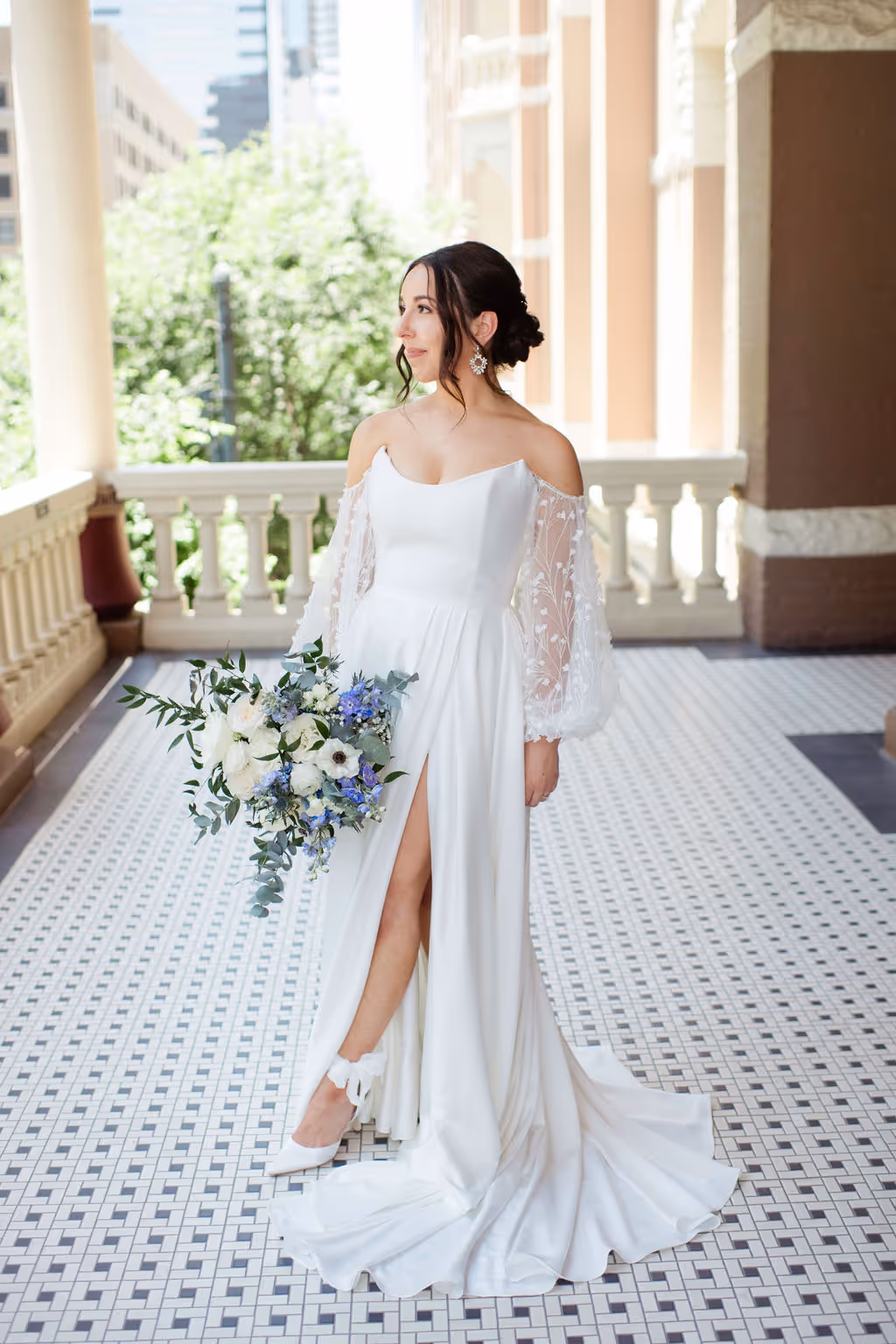 Niki and Alex's wedding was a dream come true! As Austin's premier florist for weddings and live events, we were honored to create a breathtaking greenery chandelier for their special day. The light blue flower accents we incorporated added a touch of "something blue" to their color scheme, making their celebration at St. Mary Catholic Church and the Driskill Hotel even more magical.