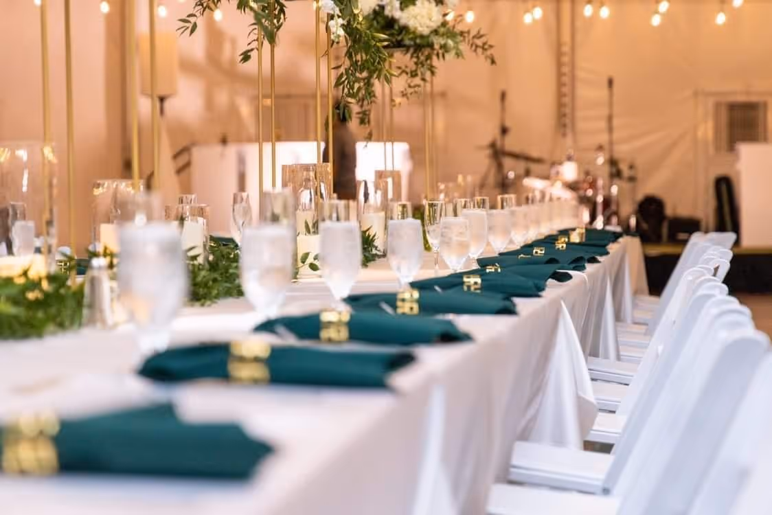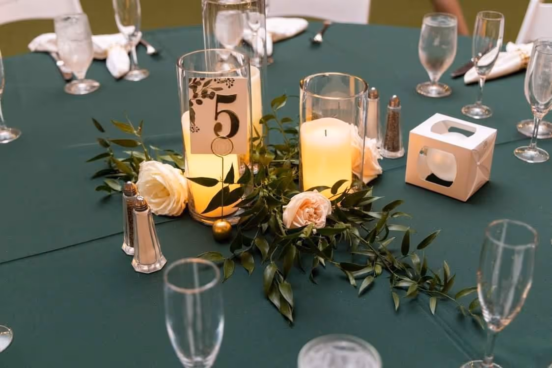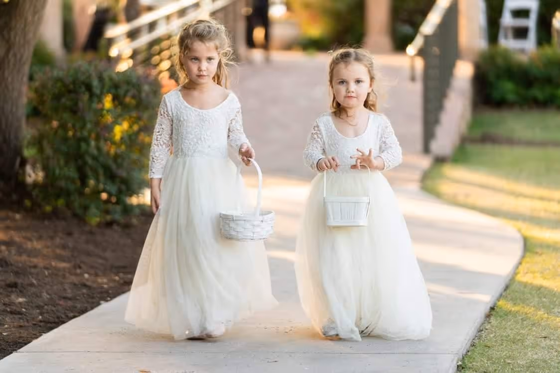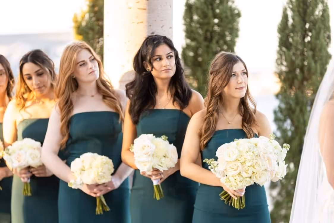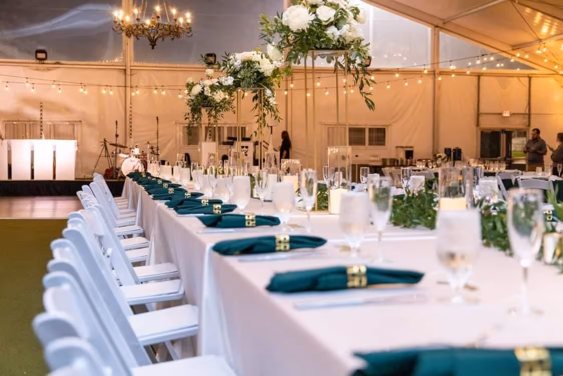 Thea and Michael's Horseshoe Bay Resort wedding day was one of our favorites!! They selected such a classic color palette of ivory, white, and greenery to bring their elegant wedding day to life. Their timeless flowers and decor had our florists swooning over every single floral design! From their lakeside terrace ceremony under the venue's pergola to their reception under strands of golden lights it was simply perfect. For the bridal party bouquets we used traditional style designs with little to no greenery full of premium flowers and lush garden roses. We used our gold harlow stands rentals for each side of the ceremony aisles that were brought in after the ceremony and transformed from aisle floral to table centerpieces. The reception head table was absolutely stunning! With a mixture of our rental clear glass hurricane vase sets and LED pillar candles among the greenery table runner garland and the repurposed aisle flower to give the table height. For their guests tables we used our hurricane vase with candle rentals with floral and greenery in between. Then for the other half, we repurposed the bouquets as centerpieces and tied all of the tables together with greenery and tea light. As a florist, I highly recommend floral like their wedding day since it is so neutral, versatile, elegant, and timeless. A wedding that will forever be beautiful and you will not look back on 20 years from now and ask yourself, "why?". Sheer perfection:)