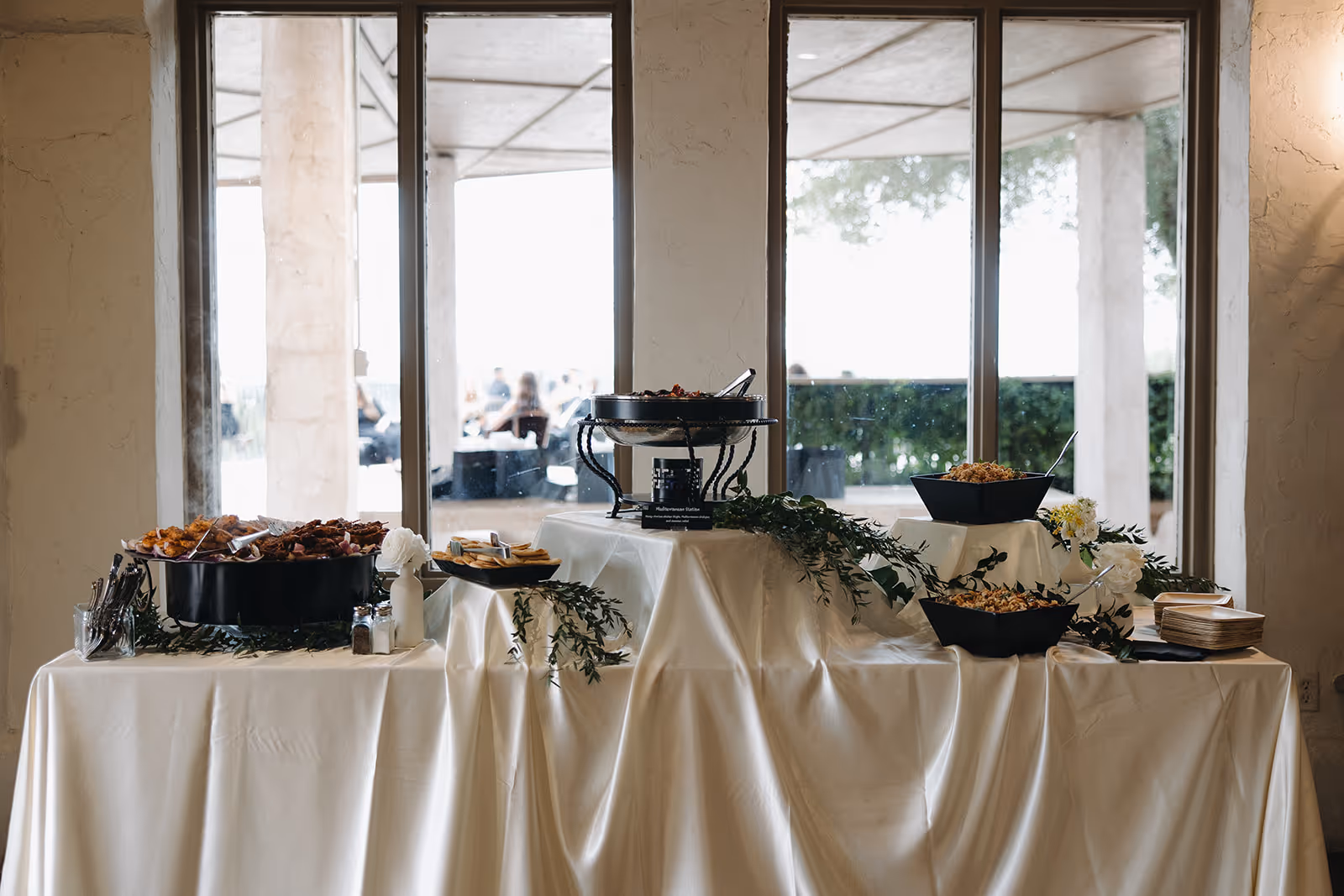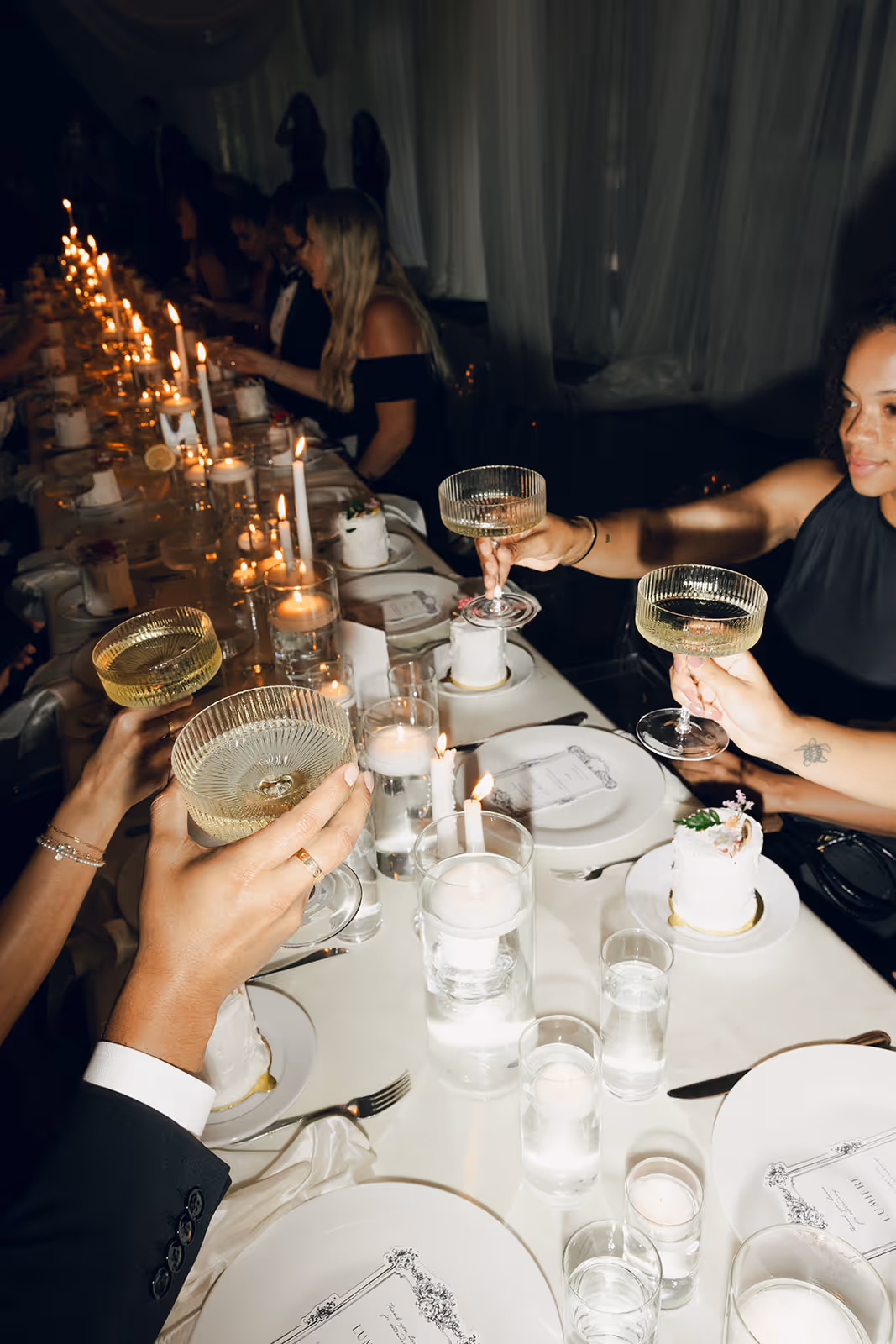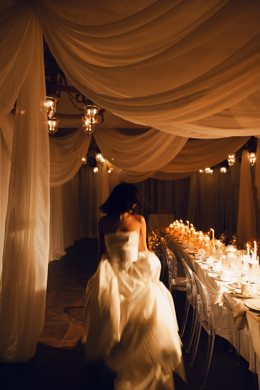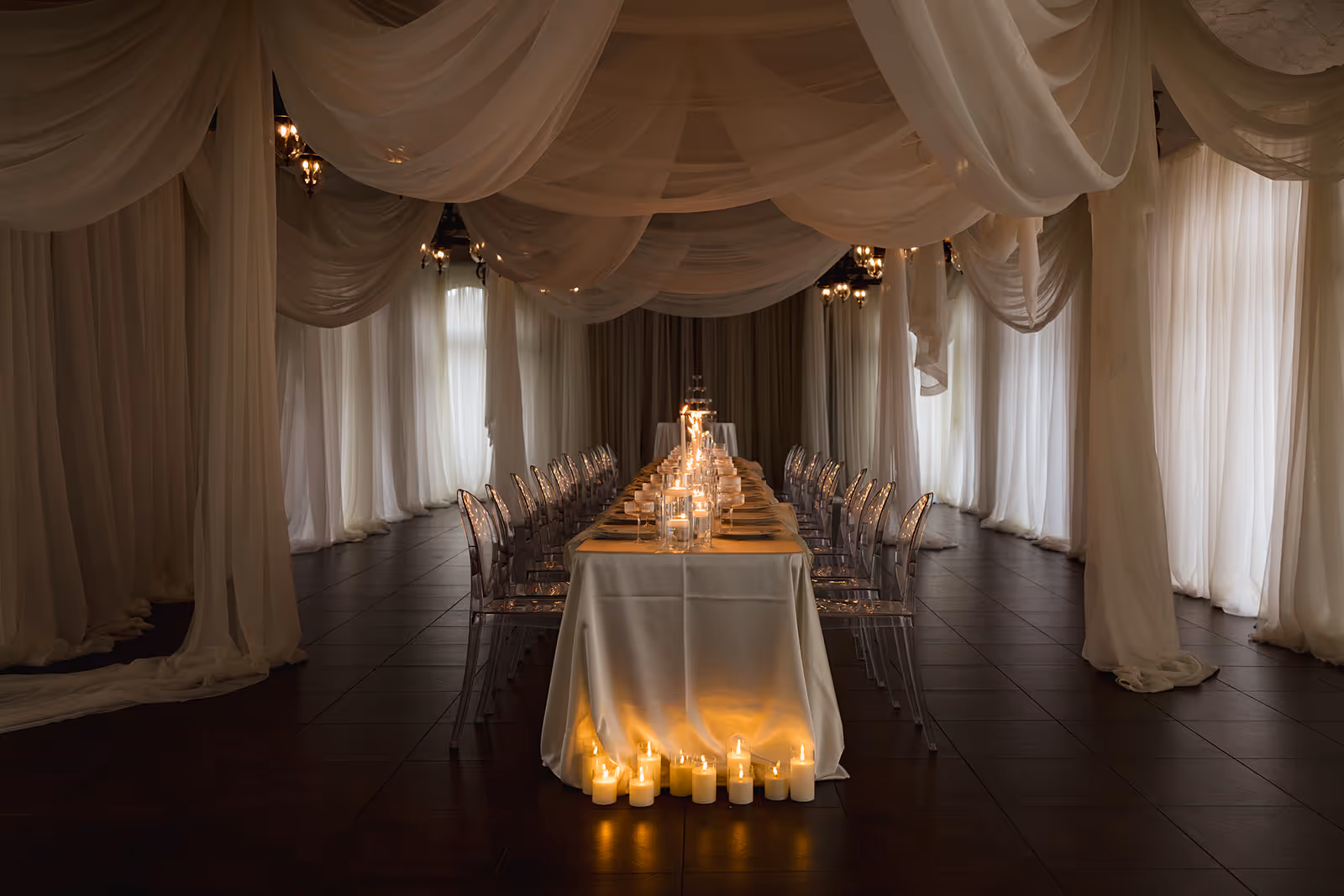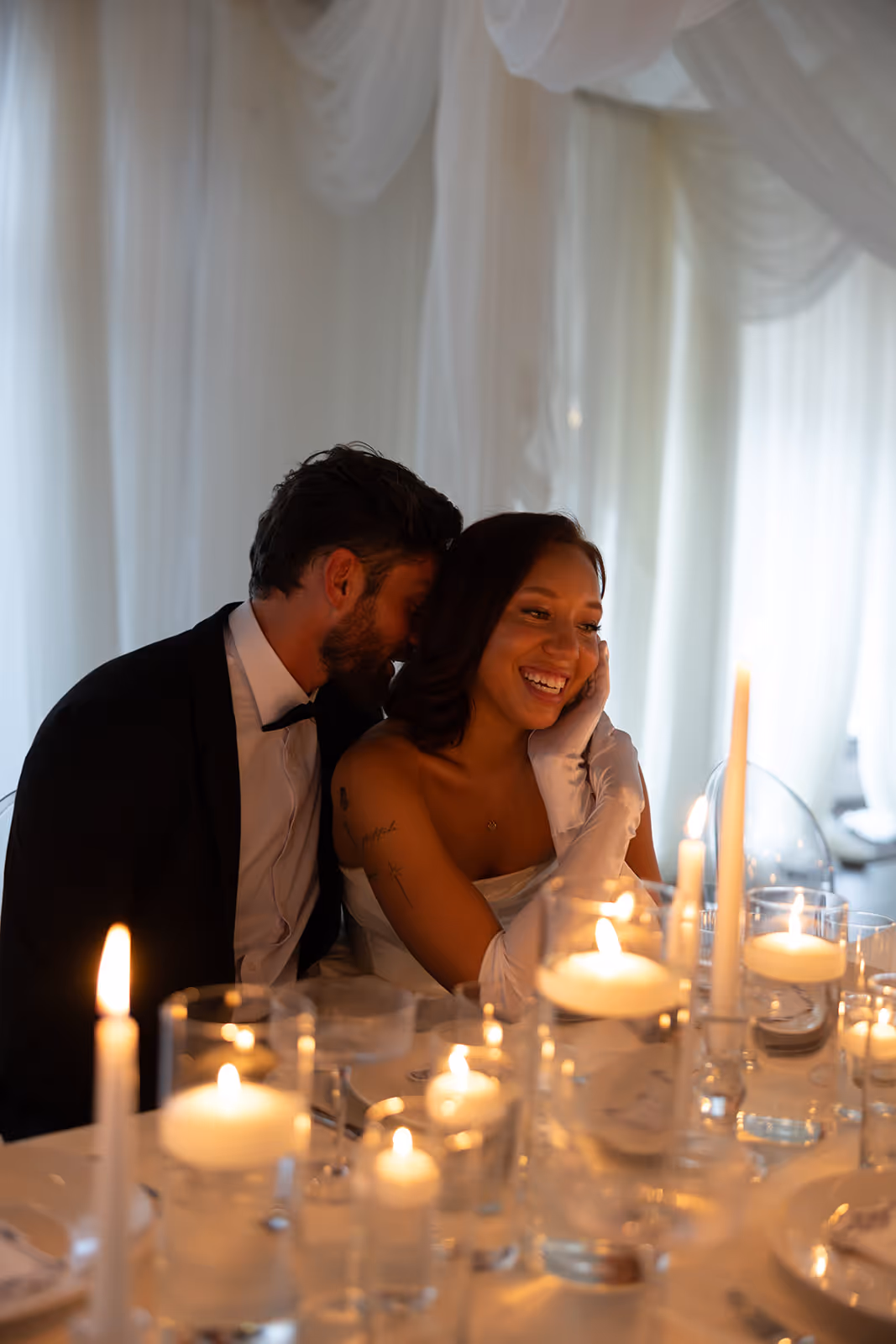 Following the heartfelt ceremony, guests moved to the reception, where candlelight flickered, casting a warm glow over the tables. The reception centerpieces were exquisite, with table flowers continuing the elegant theme and adding a touch of romance to the celebration. The reception decor was a perfect blend of rustic charm and sophisticated elegance.