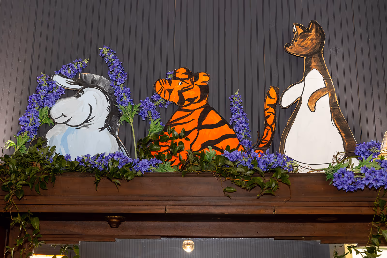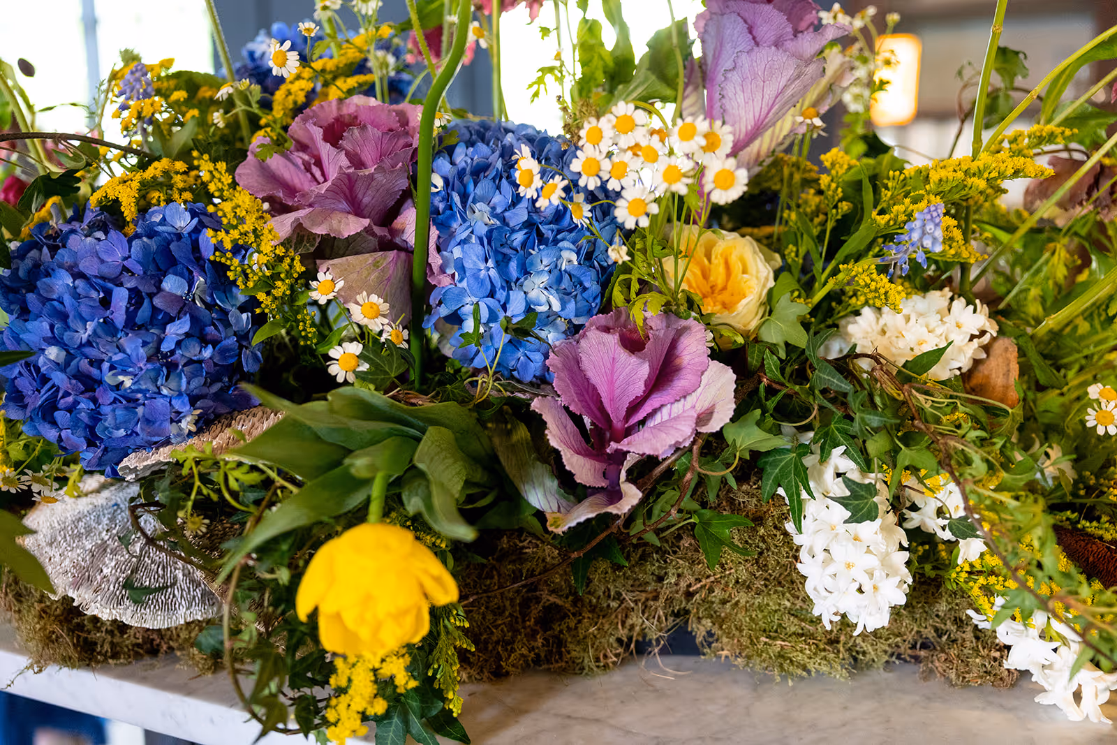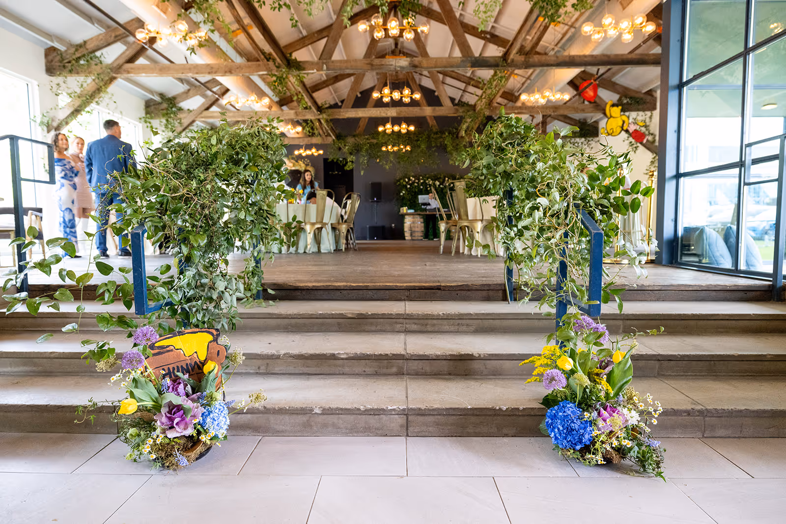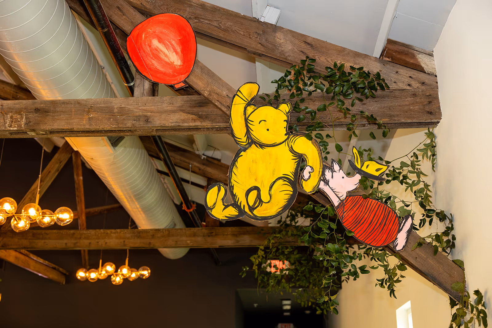 Finally, the joyous and vibrant Lover era burst forth in a riot of color. Rainbow floral arrangements, bursting with cheerful blooms and delicate butterfly accents (courtesy of Jordan Flowers & Events), perfectly mirrored the whimsical bubble balloons from My Balloon Boutique that floated throughout the space. Adding another layer of playful charm, Pop & Drop created a vibrant streamer backdrop, enhancing the celebratory and lighthearted feel of this era. Groove Labs provided dynamic lighting throughout the venue, further amplifying the energy of each era. A particularly charming touch was the natural moss at the base of every whimsical flower arrangement, a direct homage to Taylor Swift's own moss-covered home she used on stage, adding an authentic and organic feel to the celebratory atmosphere. To capture even more personalized memories, Industry Print offered live hoodie screen printing, allowing guests to take home a unique souvenir. For a special moment, EZBM – DJ Team also facilitated the presentation of a montage using a temporary projector and screen.