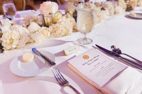 Following the heartfelt ceremony, guests moved to the reception, where candlelight flickered, casting a warm glow over the tables. The reception centerpieces were exquisite, with table flowers continuing the elegant theme and adding a touch of romance to the celebration. The reception decor was a perfect blend of rustic charm and sophisticated elegance.
